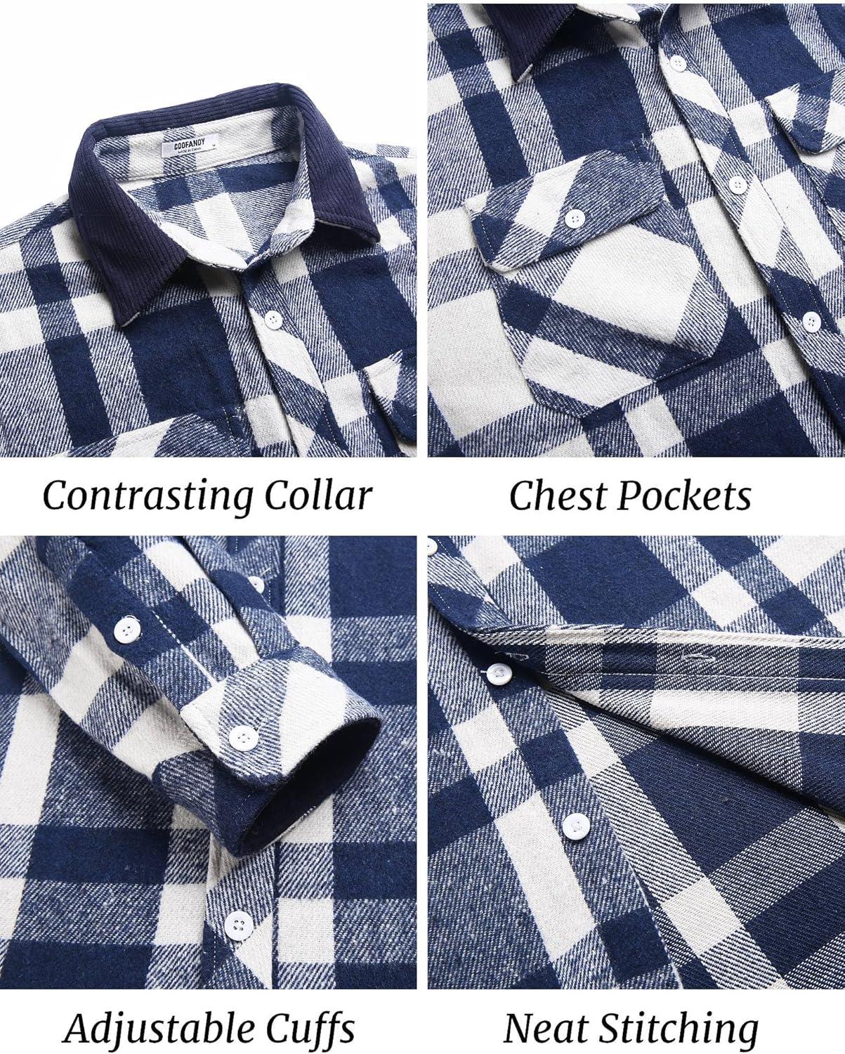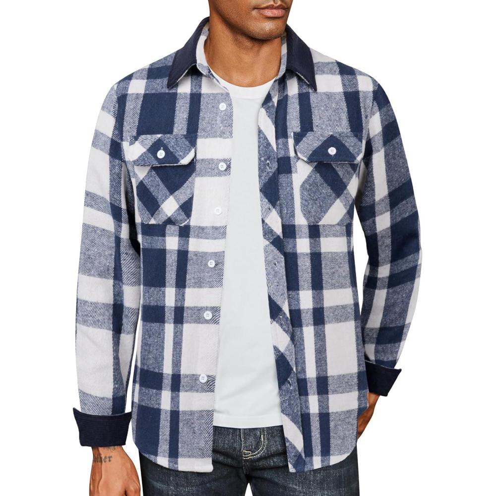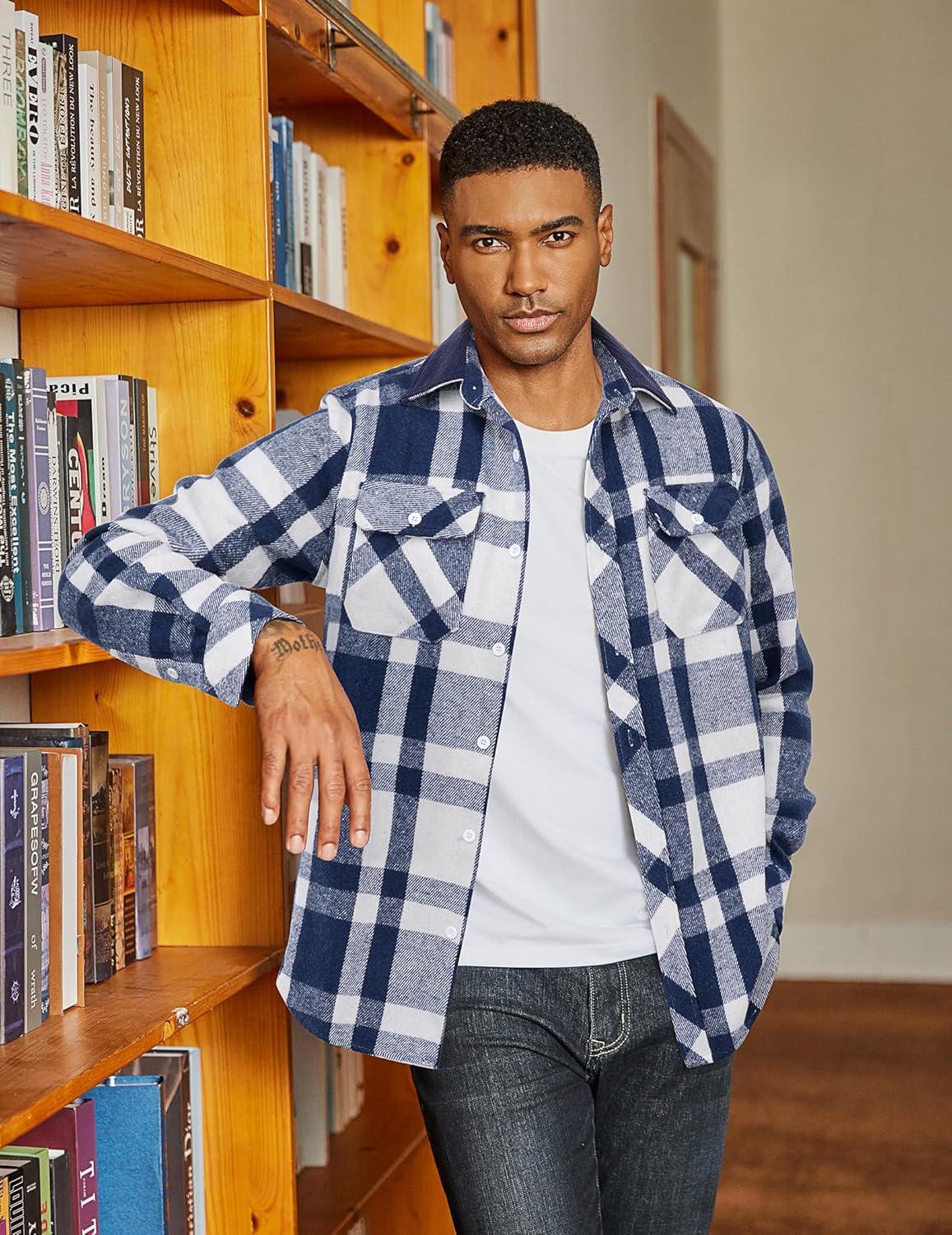 COOFANDY Mens Flannel Shirts Long Sleeve Fleece Plaid Jacket Casual Stylish Button Down Shirts with Pockets(Blue)