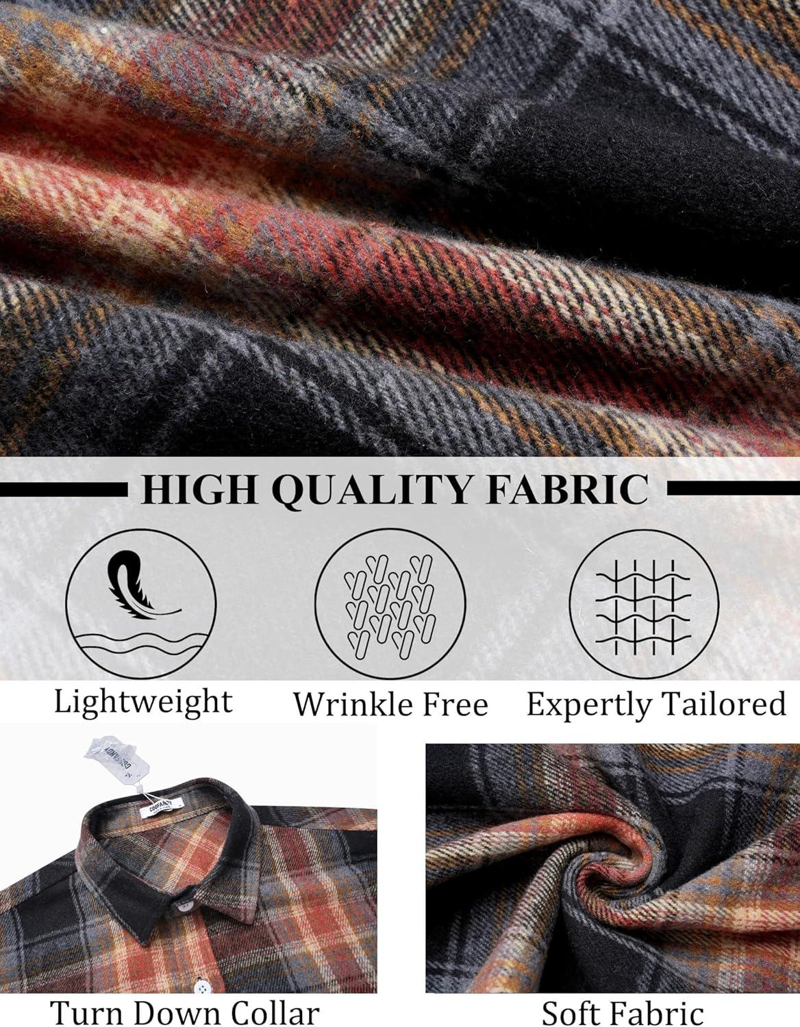 COOFANDY Mens Flannel Shirts Long Sleeve Lightweight Plaid Shirt Casual Button Down Shirts Jacket(Black Orange)