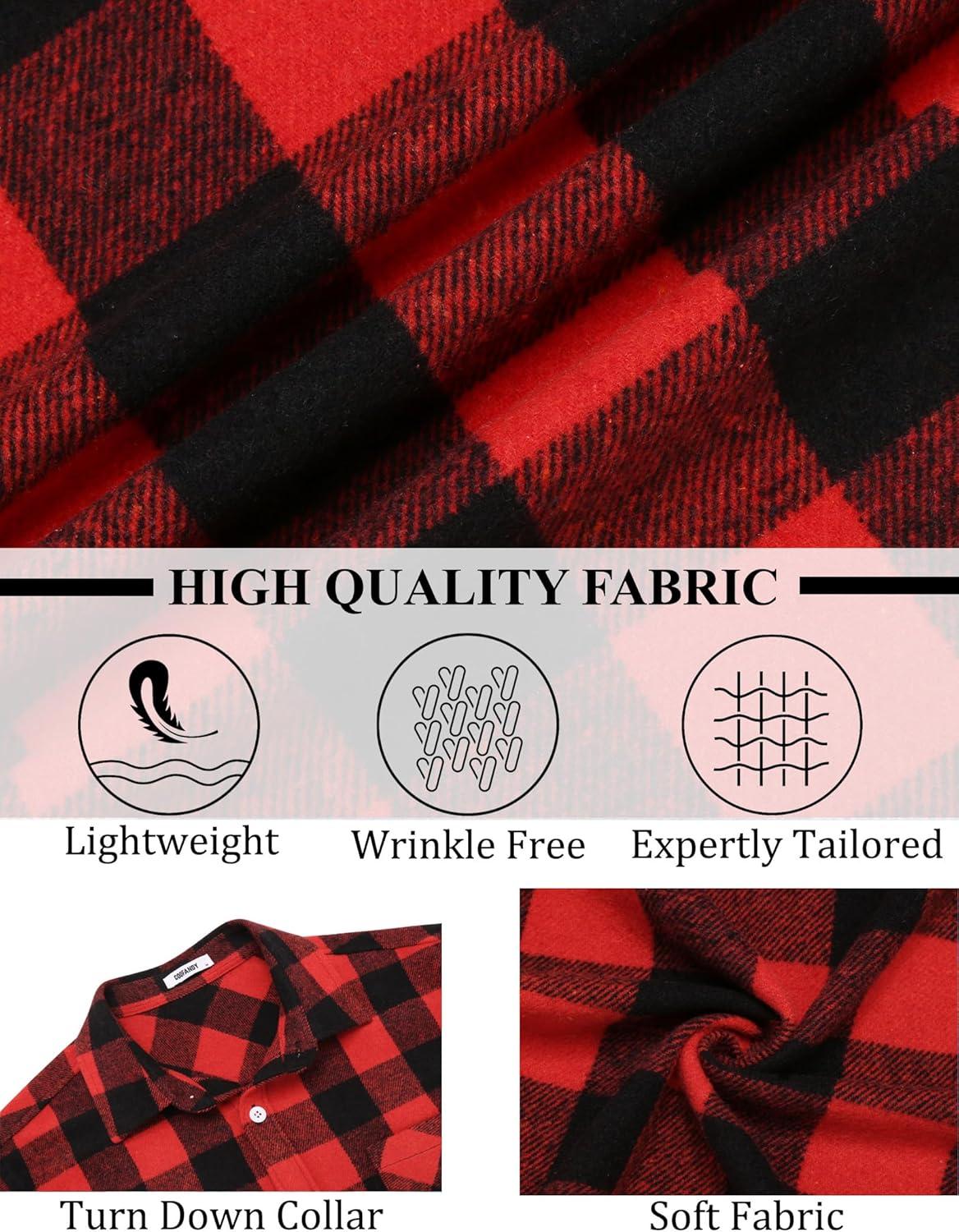 COOFANDY Mens Flannel Shirts Long Sleeve Lightweight Plaid Shirt Casual Button Down Shirts Jacket(Red Black)