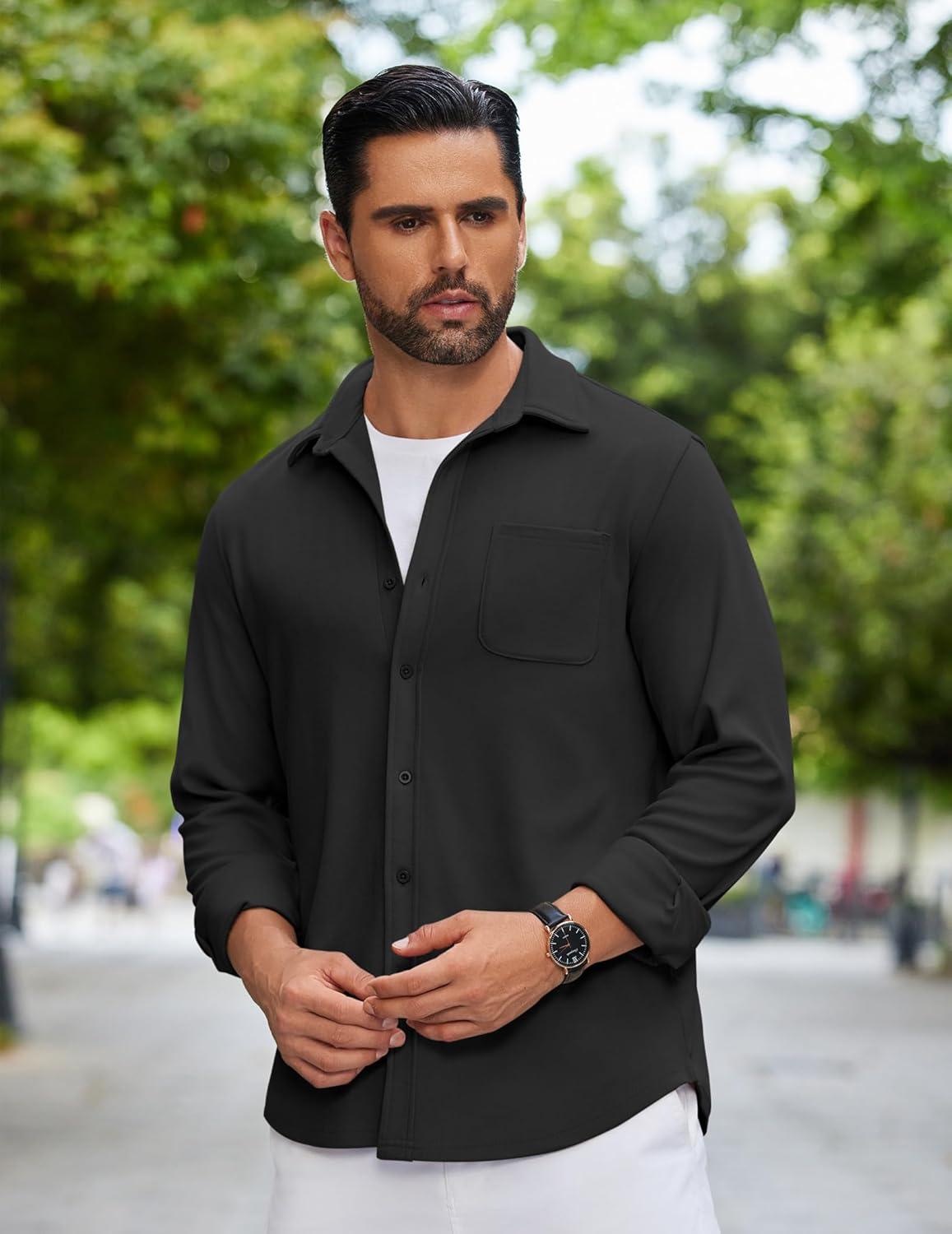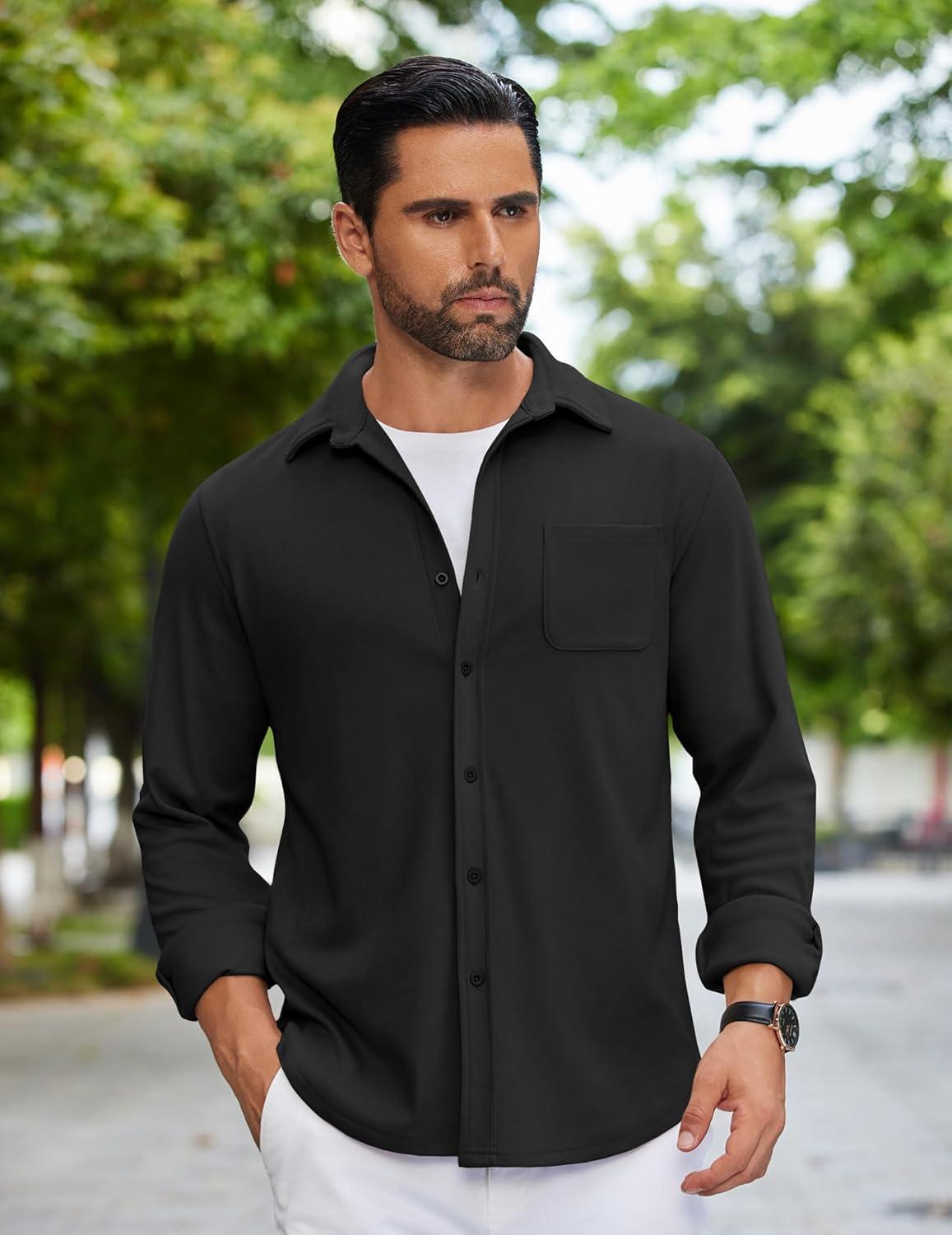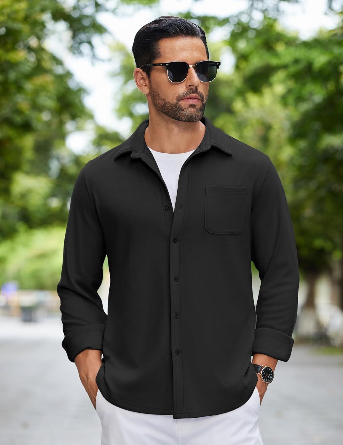 COOFANDY Mens Flannel Shirts Long Sleeve Thermal Button Down Shirt Shacket Lightweight Jacket(Black)