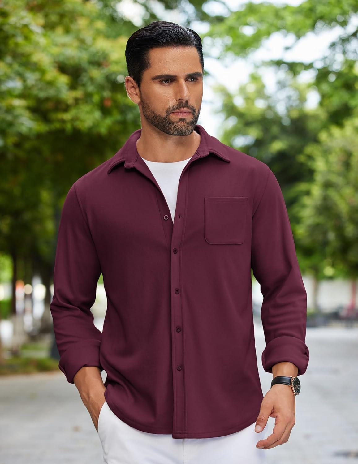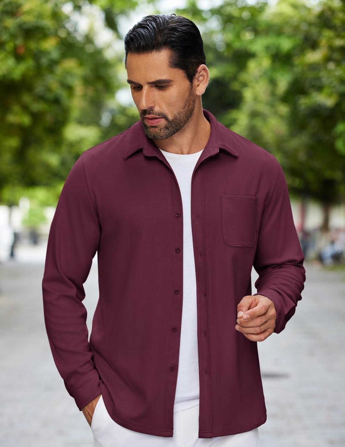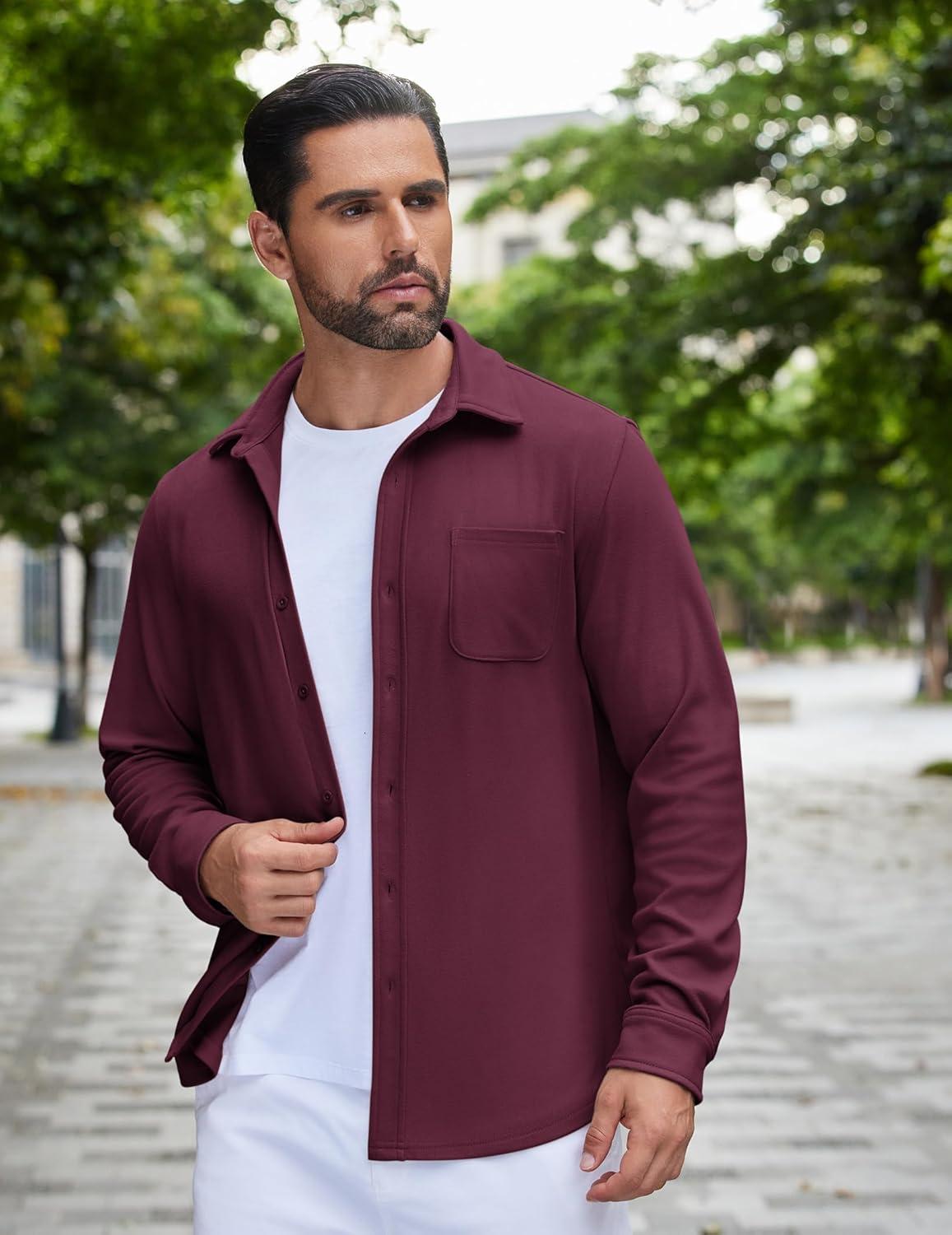 COOFANDY Mens Flannel Shirts Long Sleeve Thermal Button Down Shirt Shacket Lightweight Jacket(Red)