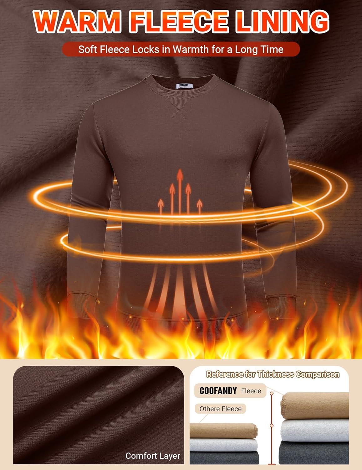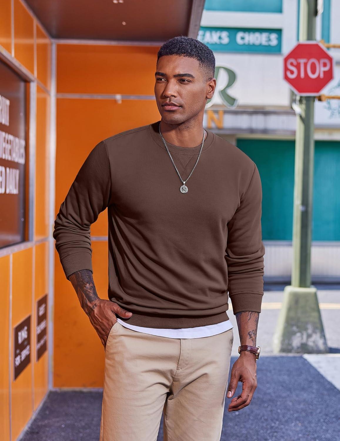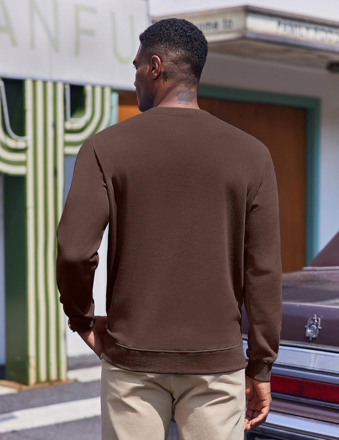 COOFANDY Men’s Fleece Crewneck Sweatshirt Casual Long Sleeve Pullover Fall Winter Warm Sweatshirts Fashion Pullovers(Brown)