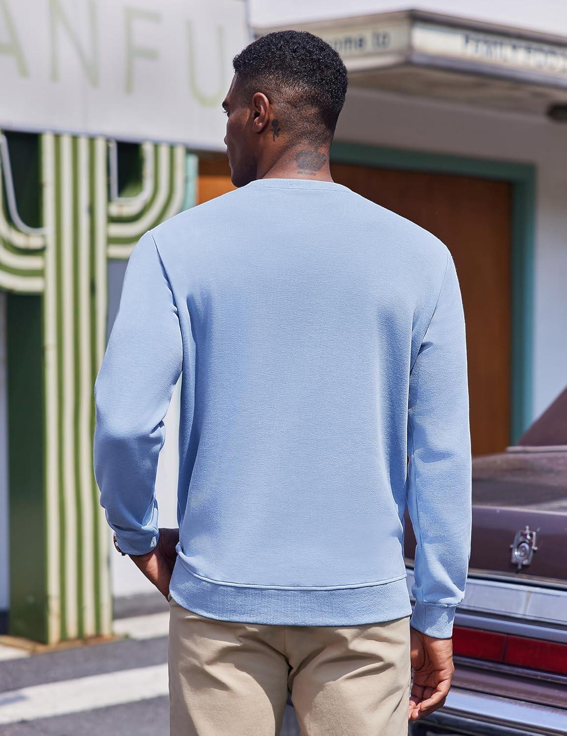 COOFANDY Men’s Fleece Crewneck Sweatshirt Casual Long Sleeve Pullover Fall Winter Warm Sweatshirts Fashion Pullovers(Light Blue)