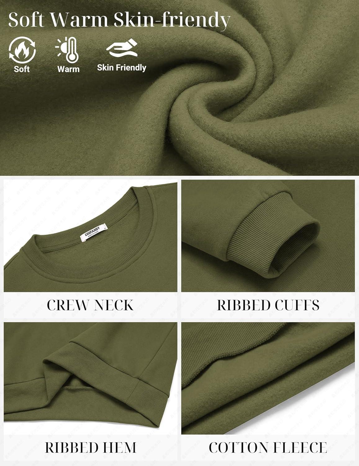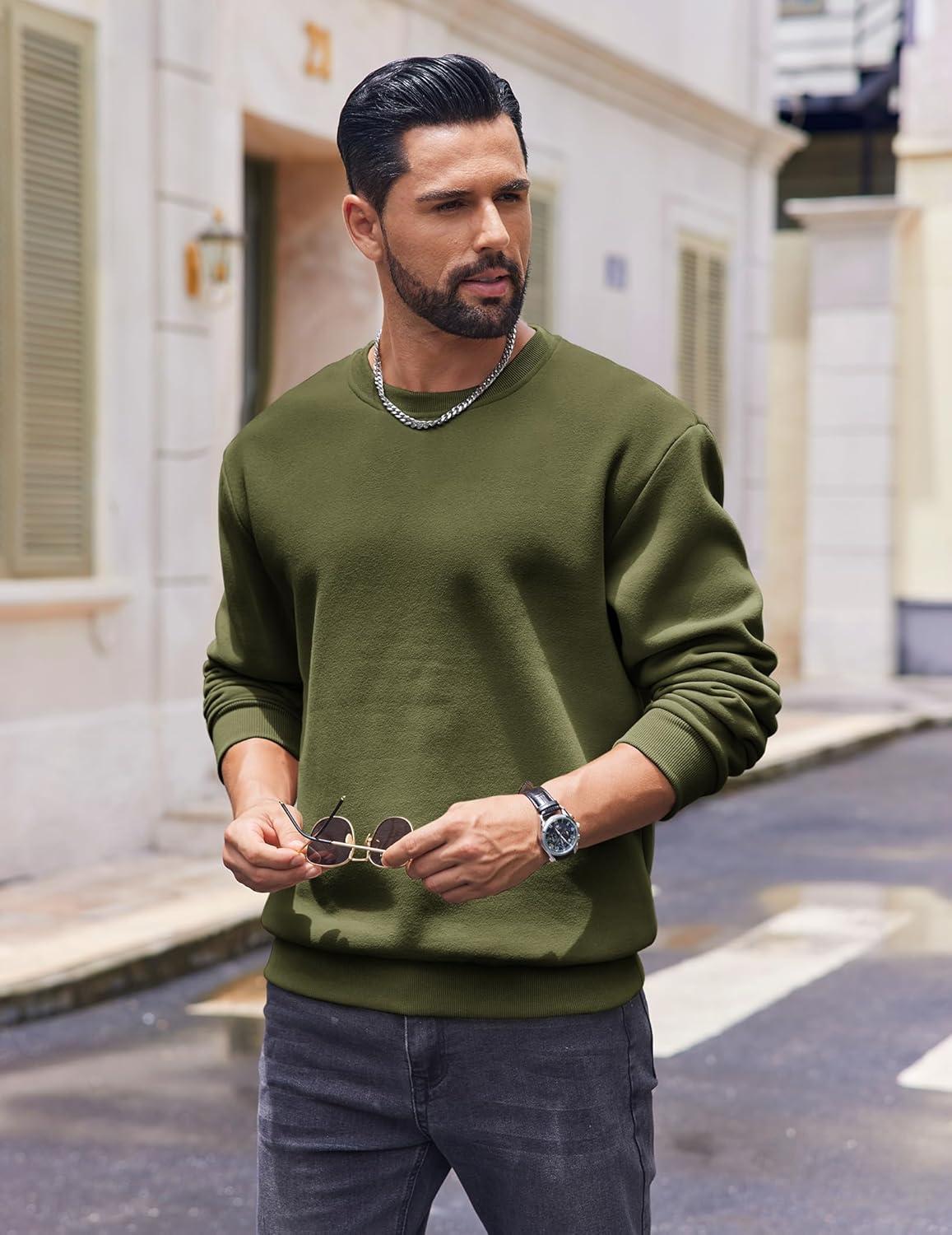 COOFANDY Men’s Fleece Crewneck Sweatshirt Cotton Long Sleeve Pullover Casual Thermal Shirts(Dark Green)