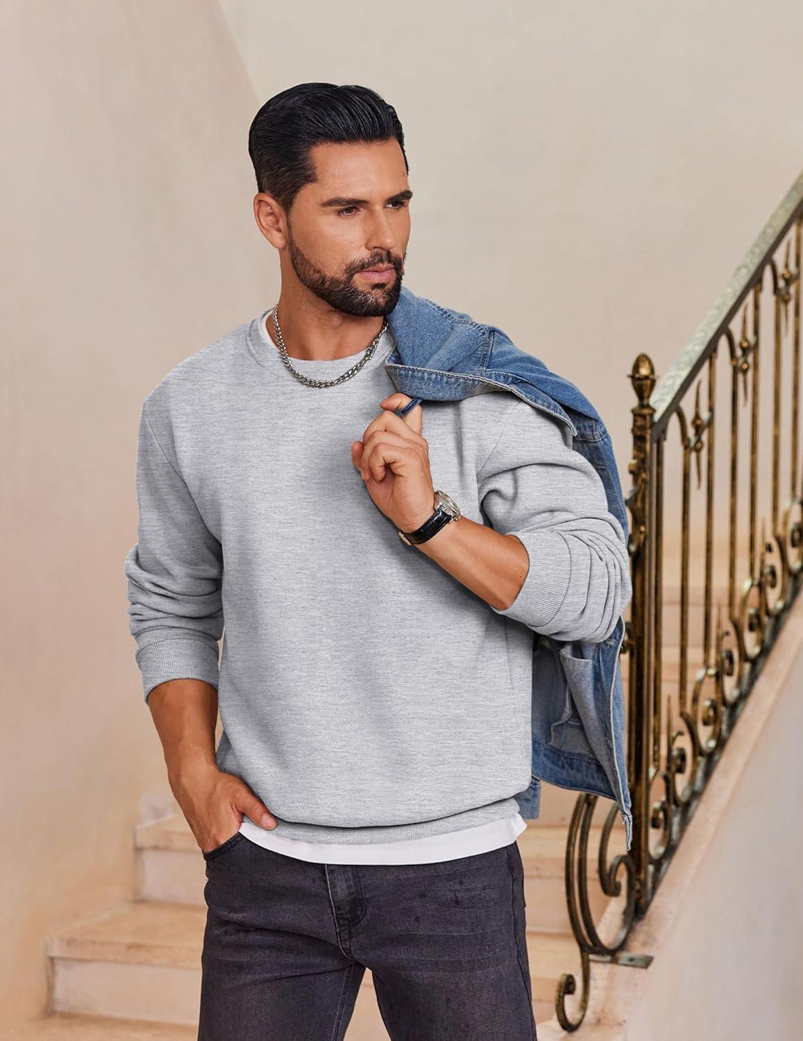 COOFANDY Men’s Fleece Crewneck Sweatshirt Cotton Long Sleeve Pullover Casual Thermal Shirts(Light Grey)