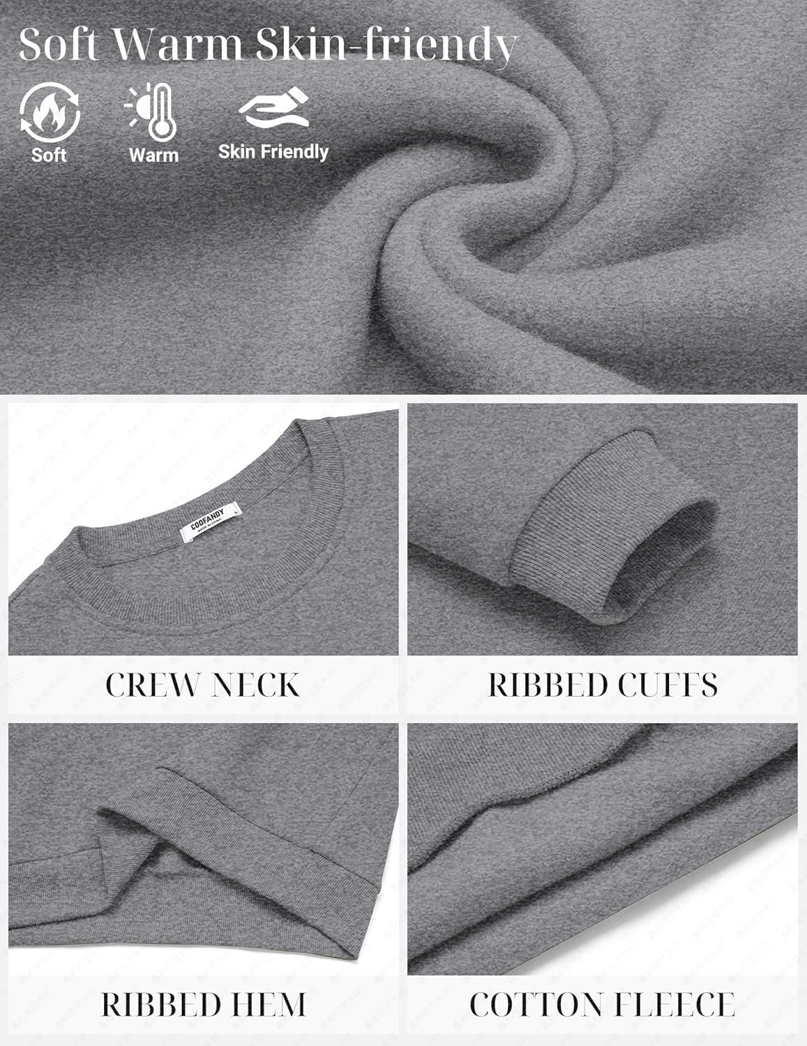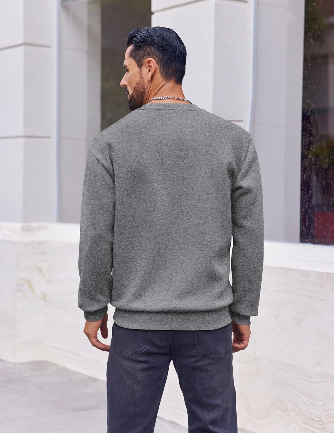 COOFANDY Men’s Fleece Crewneck Sweatshirt Cotton Long Sleeve Pullover Casual Thermal Shirts(Mid Grey)