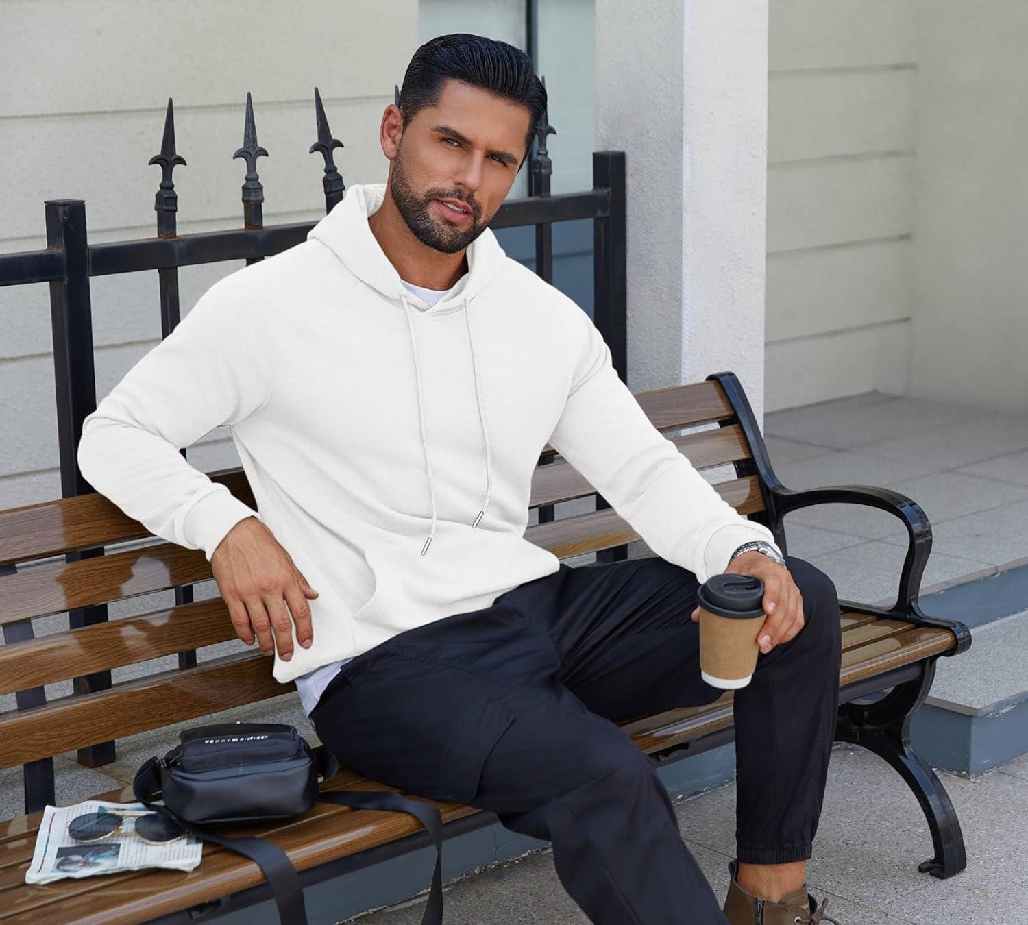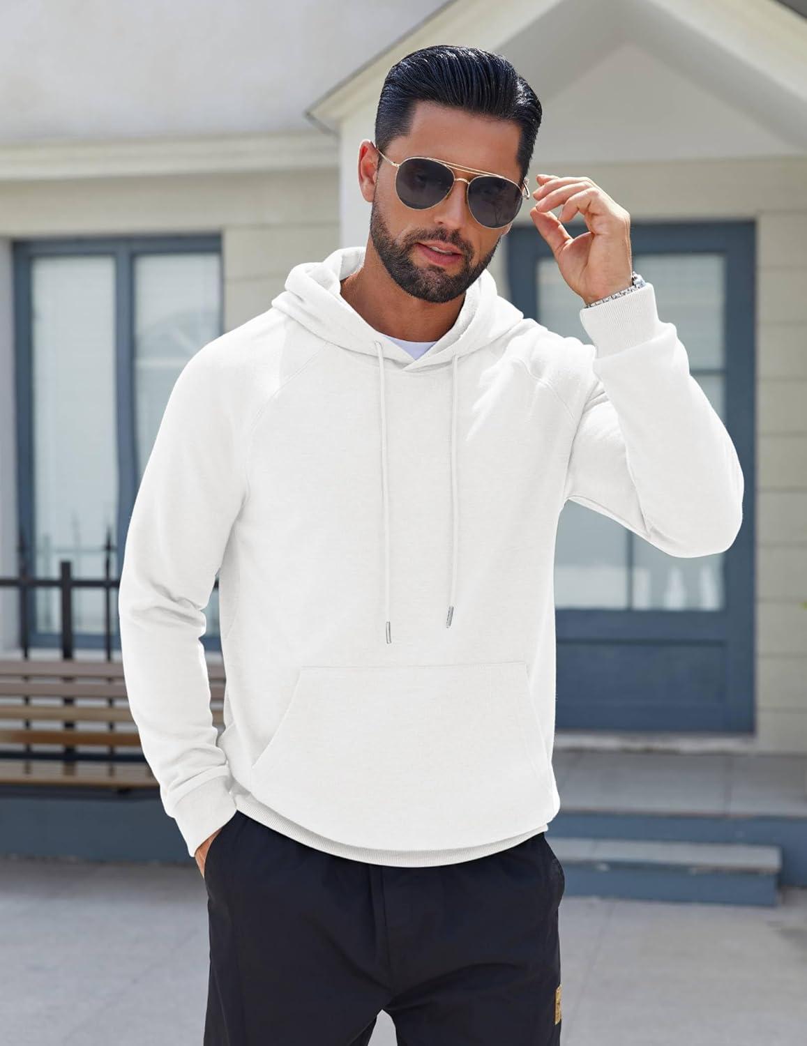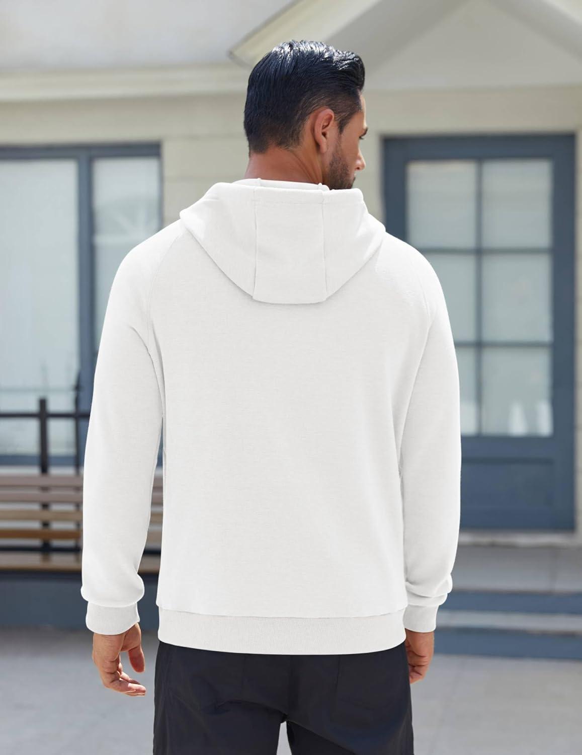 COOFANDY Men’s Fleece Hoodie Long Sleeve Hooded Sweatshirt Casual Basic Essential Drawstring Pullover Hoodie With Pocket(White)