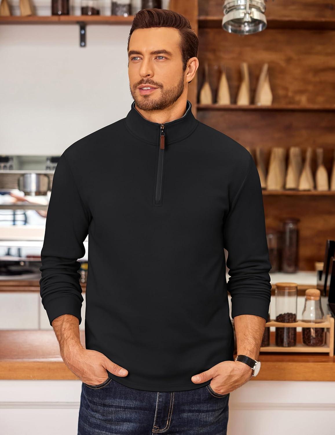 COOFANDY Men’s Fleece Quarter Zip Pullover Long Sleeve Mock Neck Sweatshirt(Black)
