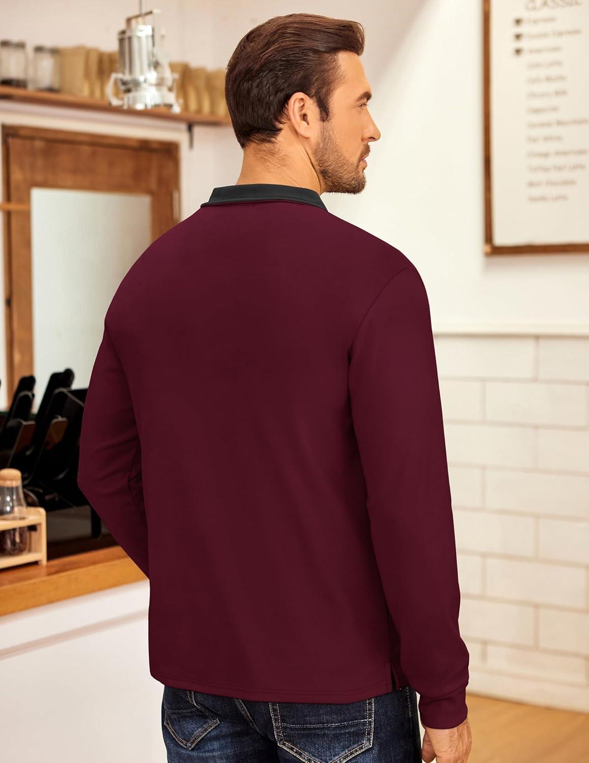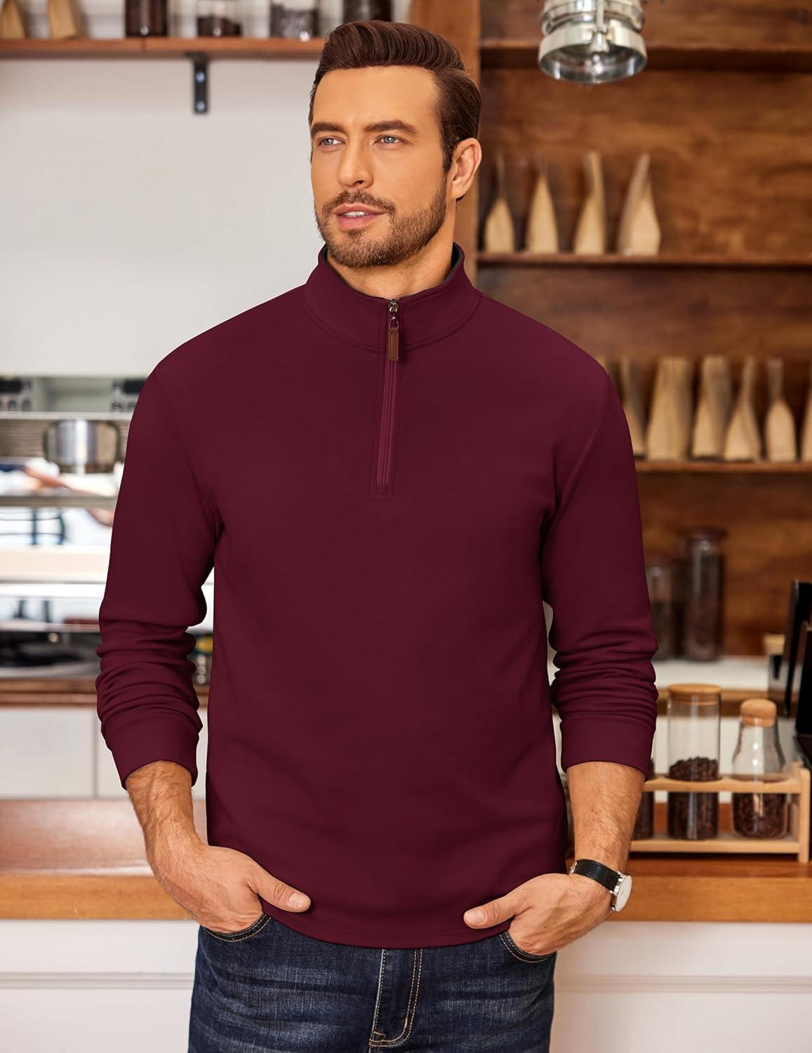 COOFANDY Men’s Fleece Quarter Zip Pullover Long Sleeve Mock Neck Sweatshirt(Burgundy)