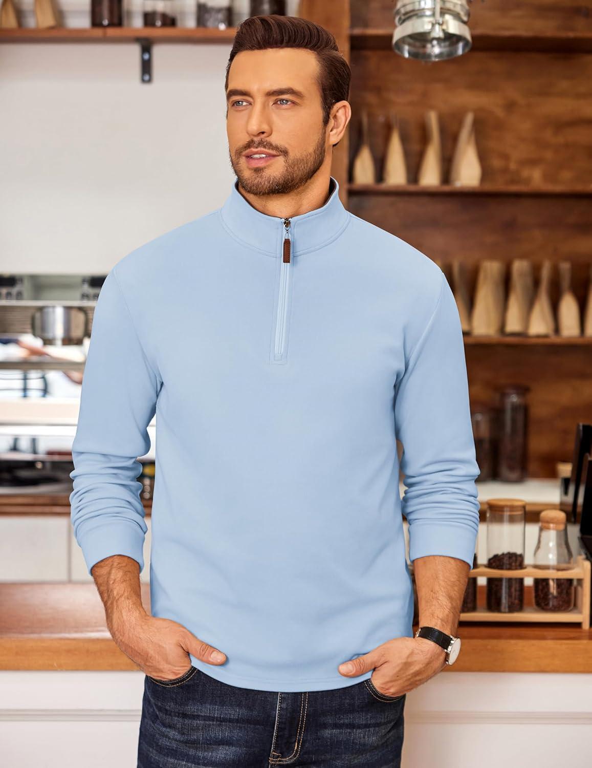COOFANDY Men’s Fleece Quarter Zip Pullover Long Sleeve Mock Neck Sweatshirt(Light Blue)