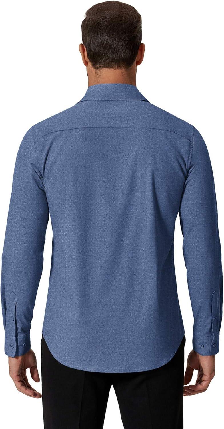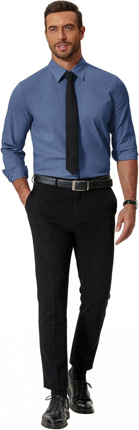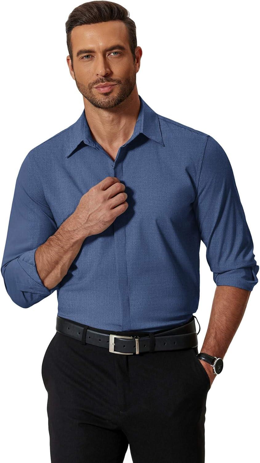 COOFANDY Men’s Formal Dress Shirt Hidden Button Front Wrinkle Free Shirt Regular Fit Stretch Business Casual Shirts(Denim Blue)