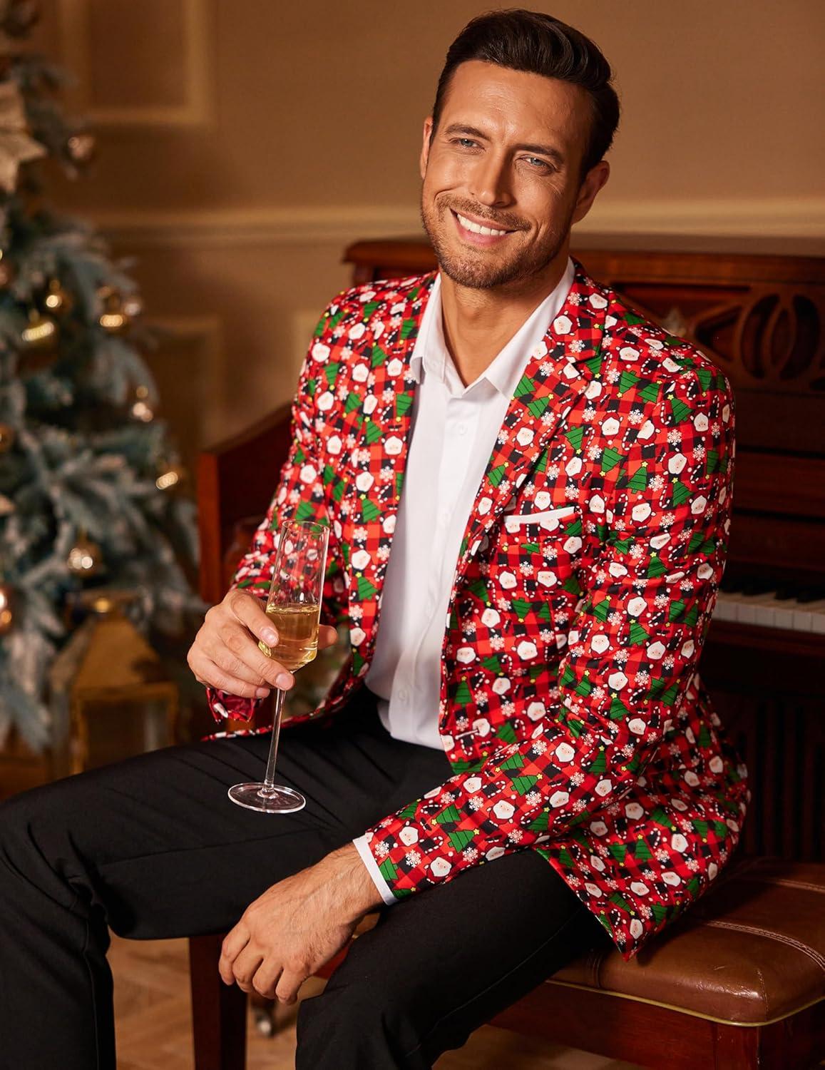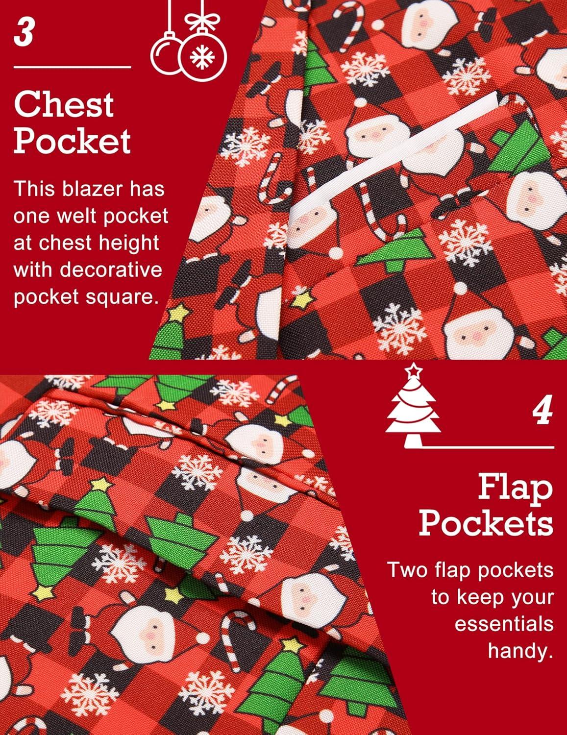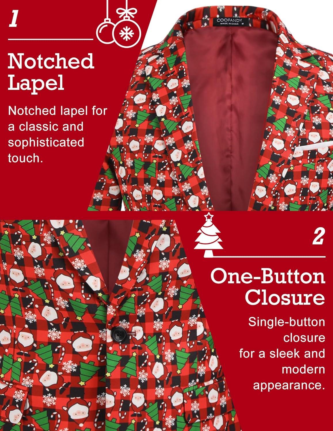 COOFANDY Men’s Halloween Blazer Jacket One Button Christmas Sport Coat Halloween Party Holiday Jacket(Christmas Blazer – Xmas Buffalo Plaid)