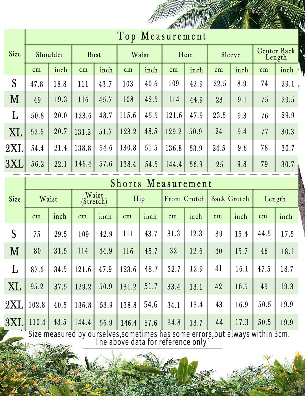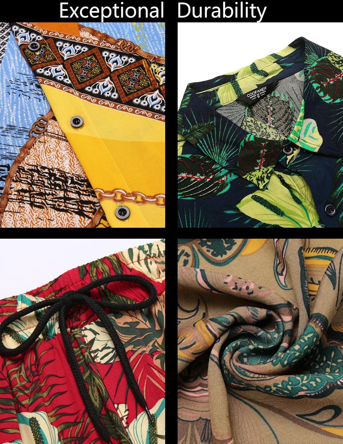 COOFANDY Men’s Hawaiian Matching Set Summer Beach 2 Piece Outfits Flower Button Down Shirts and Shorts Vacation Outfits(Green Leaves)