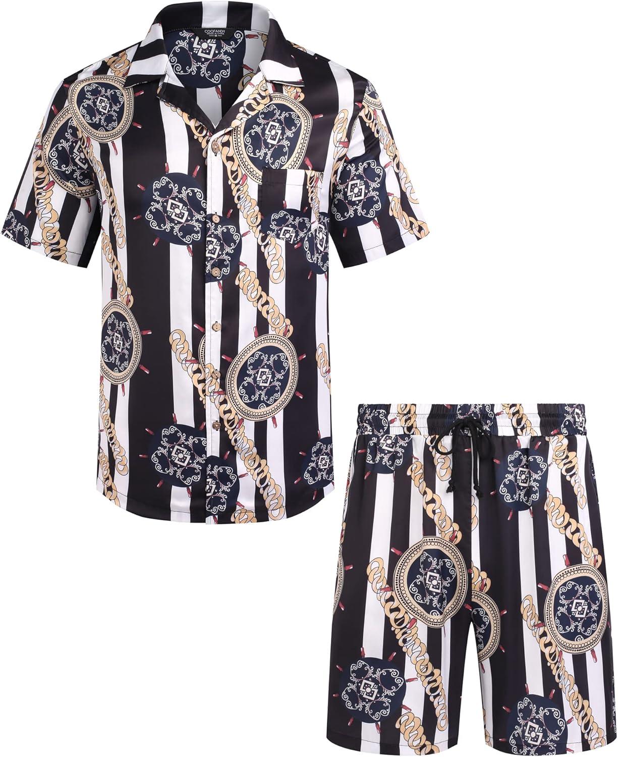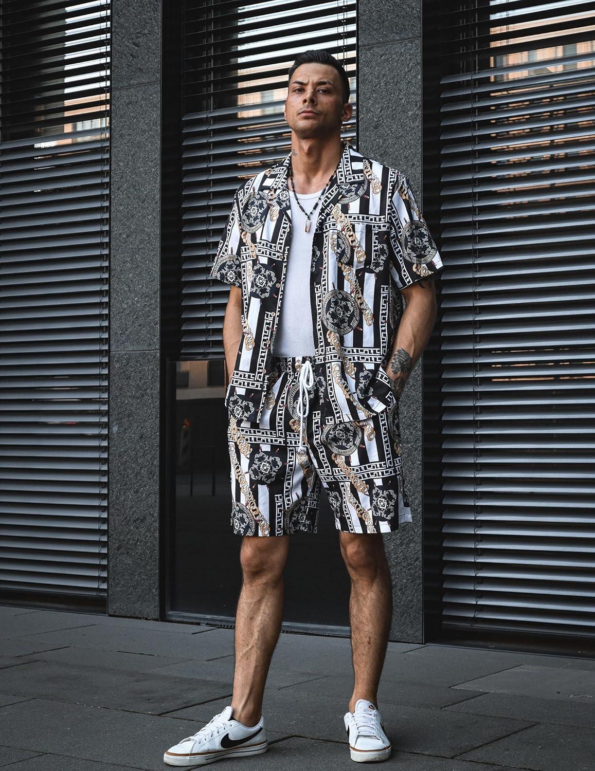 COOFANDY Mens Hawaiian Shirt and Shorts Set 2 Piece Vacation Outfits Floral Button Down Shirt(Black)