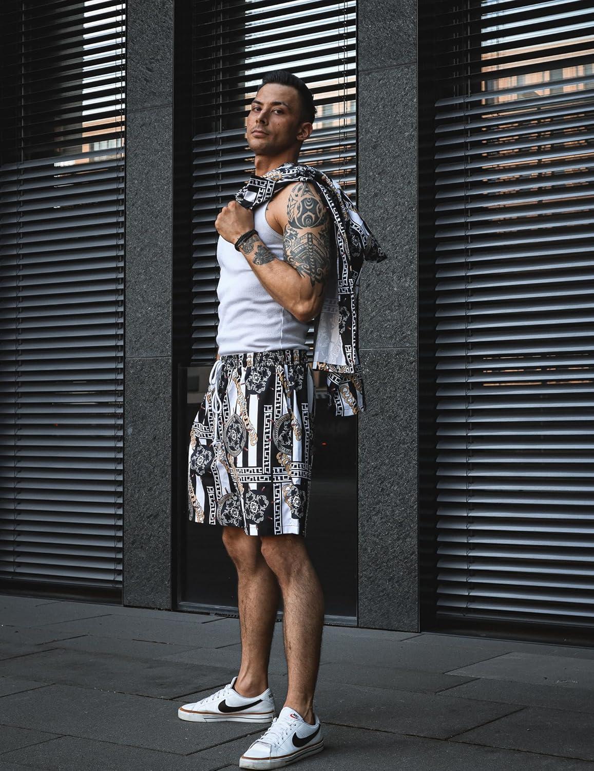COOFANDY Mens Hawaiian Shirt and Shorts Set 2 Piece Vacation Outfits Floral Button Down Shirt(White)