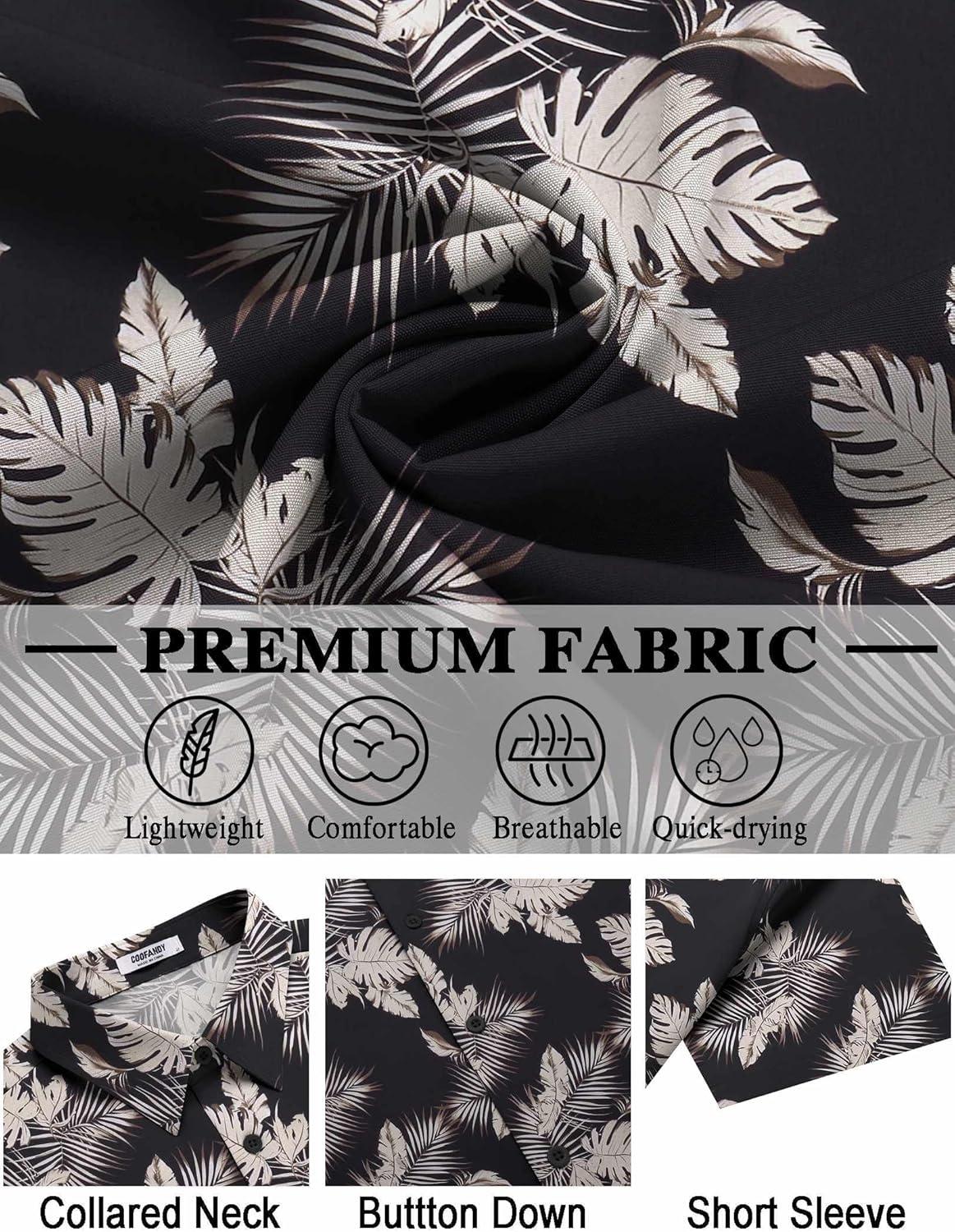 COOFANDY Mens Hawaiian Shirt Short Sleeve Button Down Shirts Tropical Floral Summer Beach Shirts(Black – Palm Leaf)