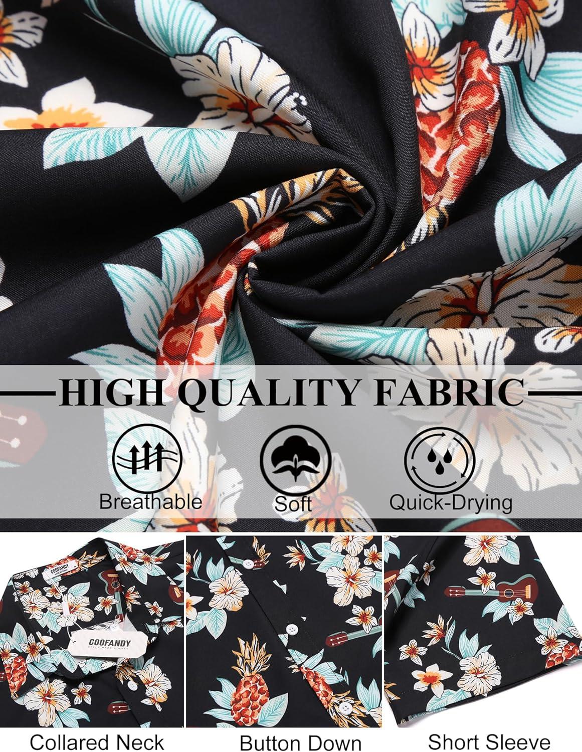 imageCOOFANDY Mens Hawaiian Shirts Short Sleeve Button Down Aloha Shirt Casual Beach ClothesBlack Blue  Green Leaf