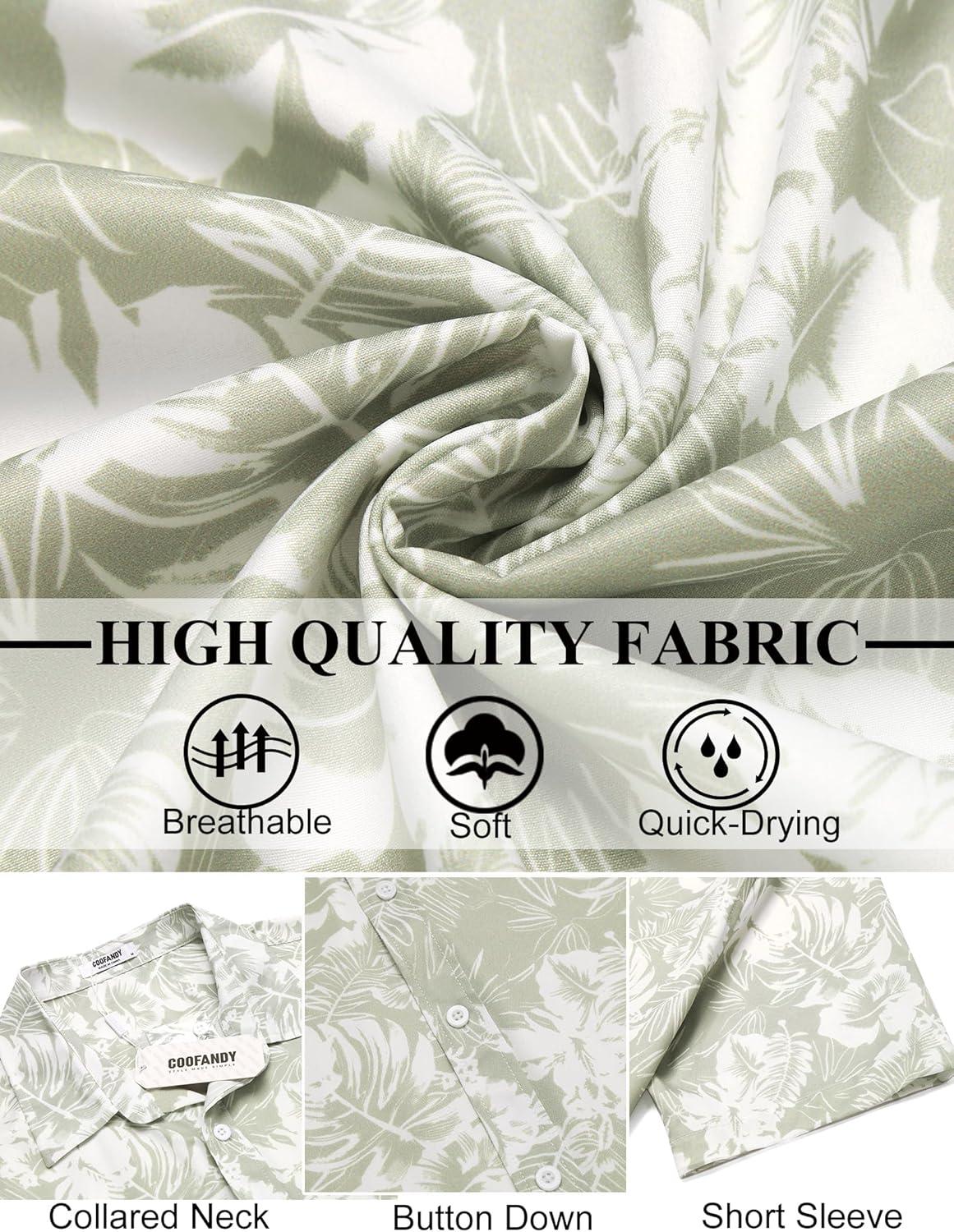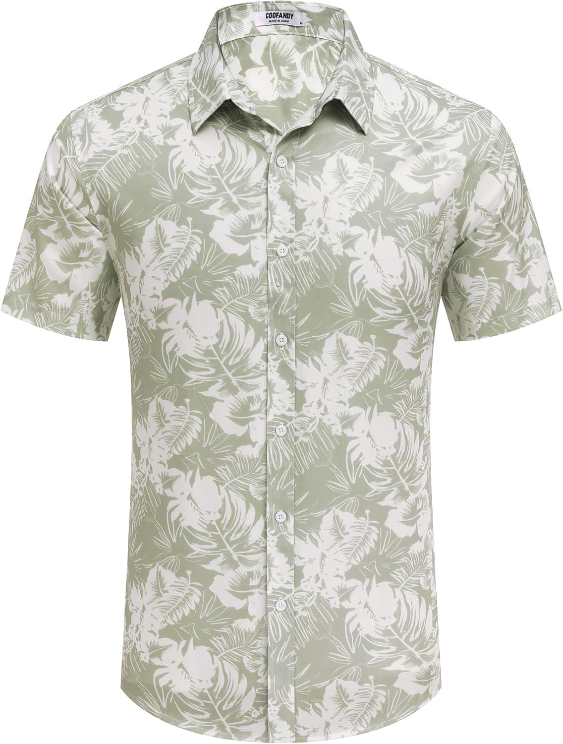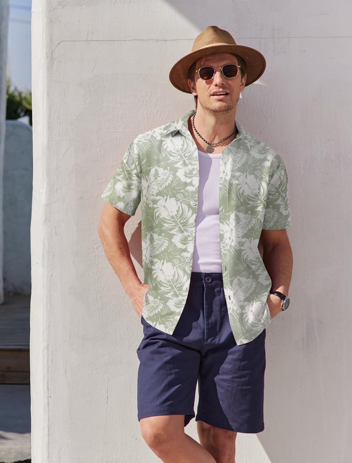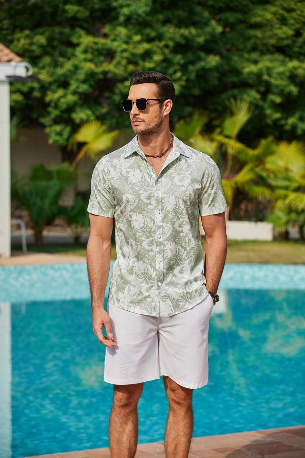 COOFANDY Mens Hawaiian Shirts Short Sleeve Button Down Aloha Shirt Casual Beach Clothes(Celadon Green- Palm Leaf)
