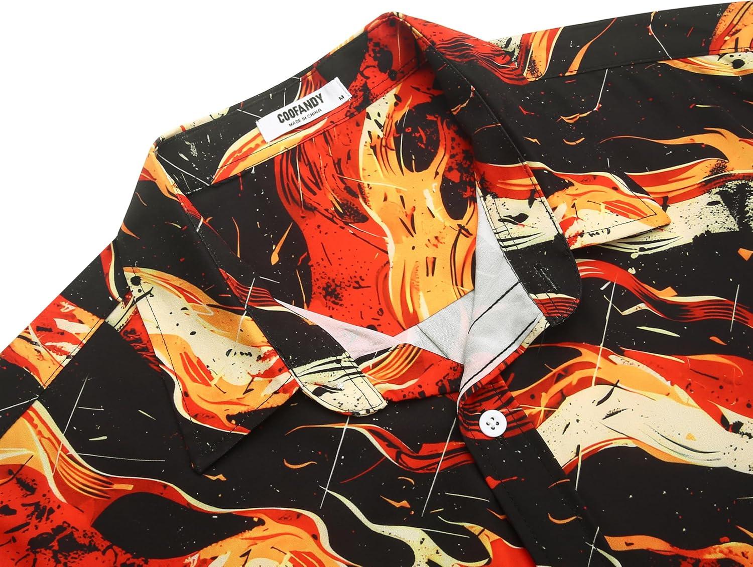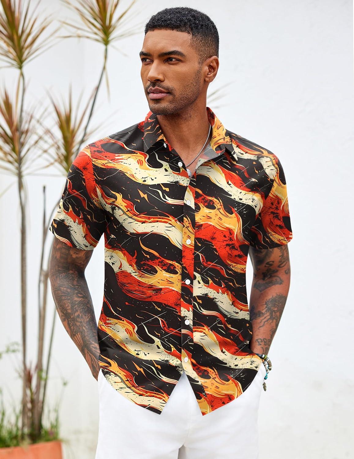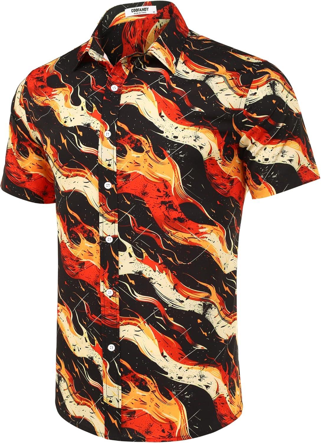 COOFANDY Mens Hawaiian Shirts Short Sleeve Button Down Aloha Shirt Casual Beach Clothes(Flame)