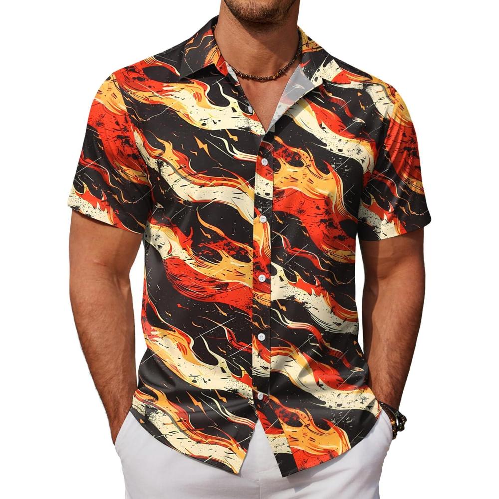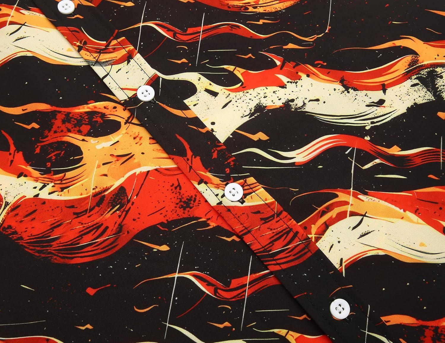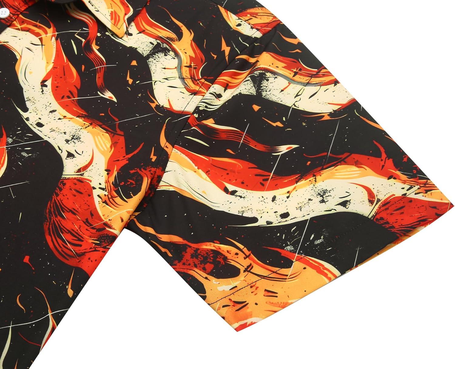 COOFANDY Mens Hawaiian Shirts Short Sleeve Button Down Aloha Shirt Casual Beach Clothes(Flame)