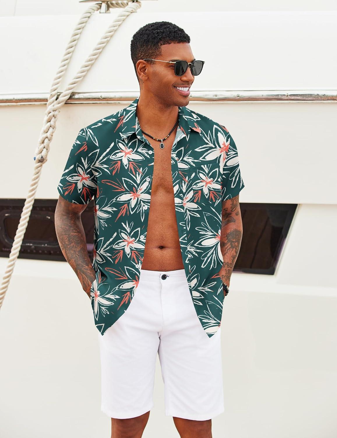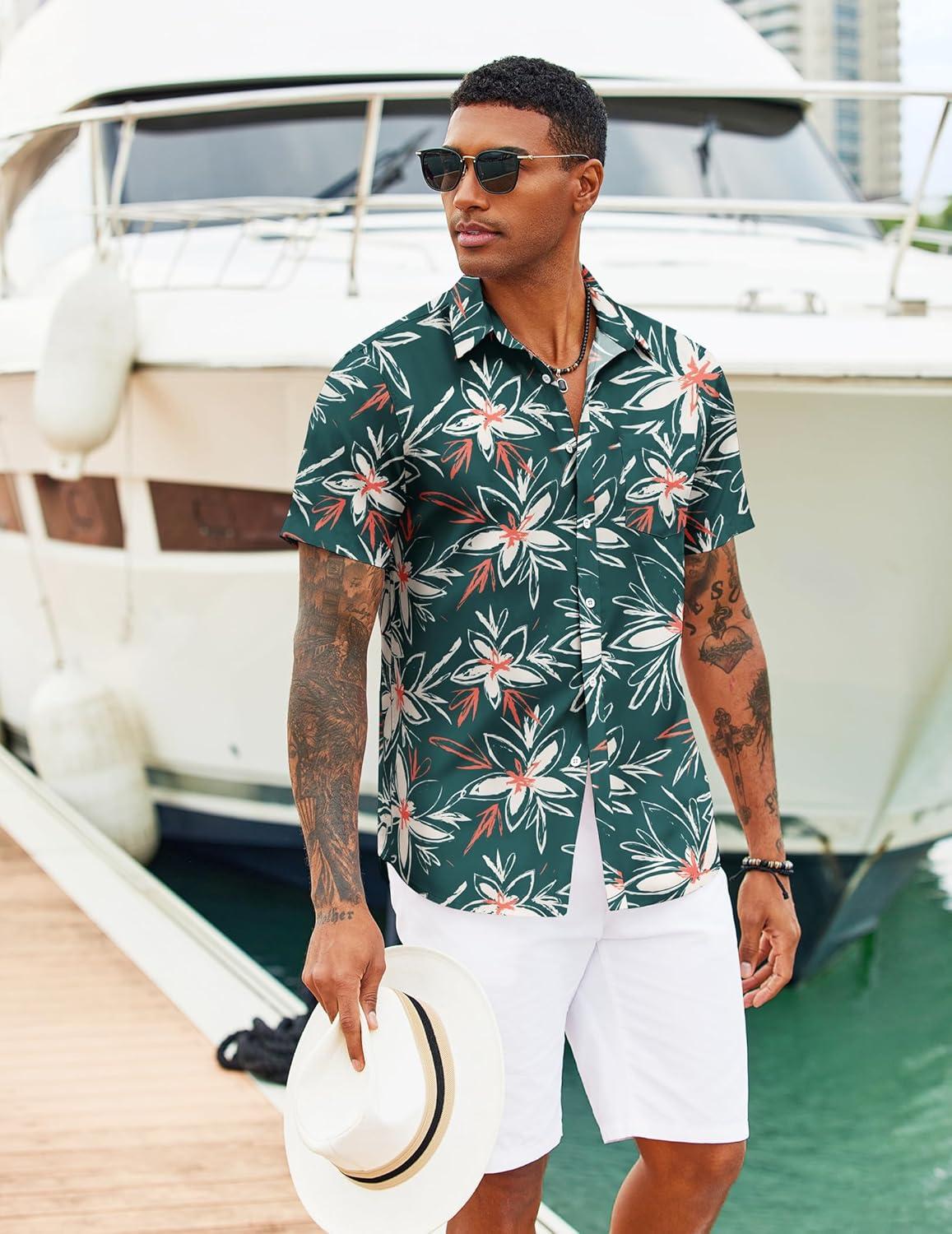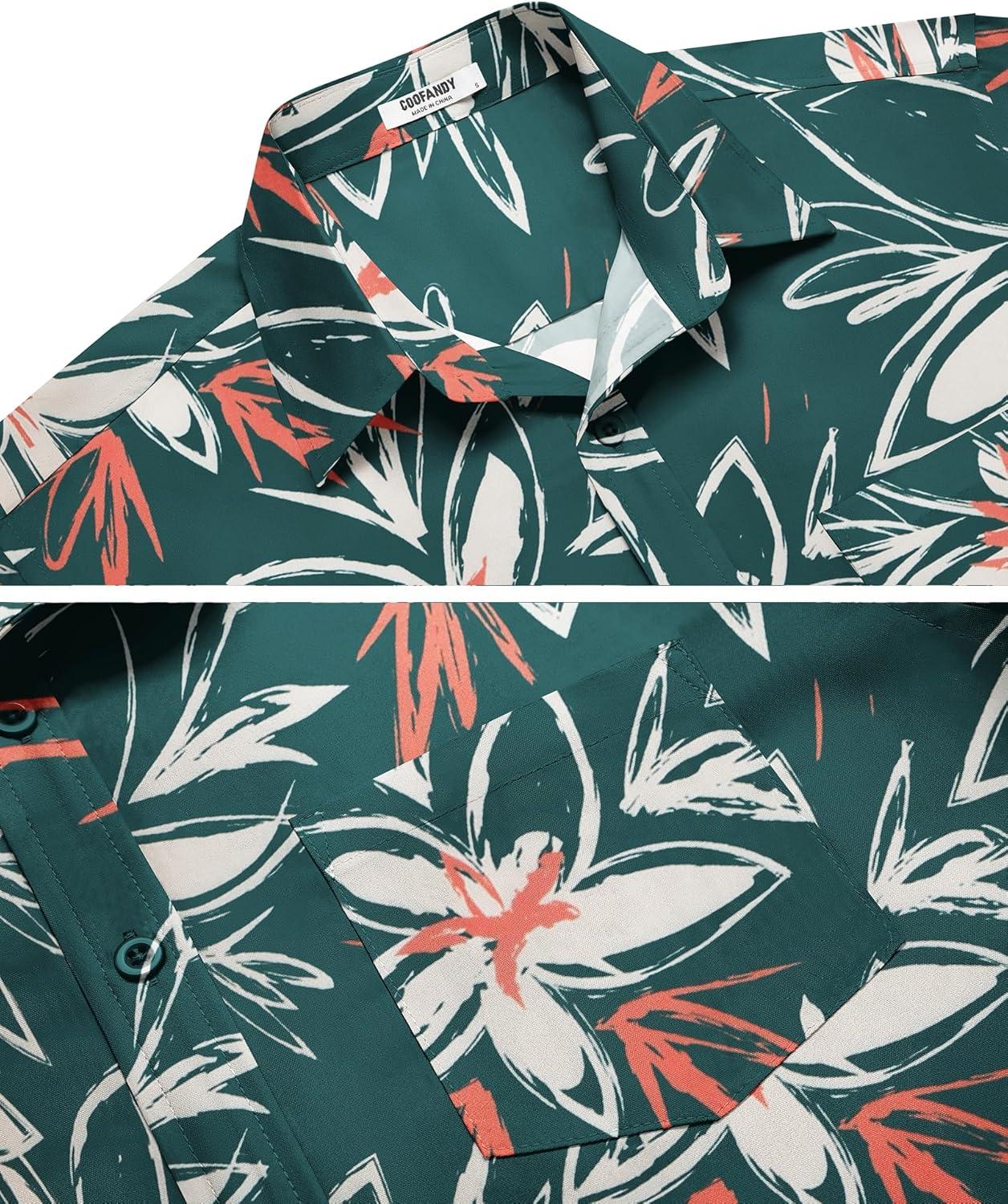 COOFANDY Mens Hawaiian Shirts Short Sleeve Tropical Button Down Shirts Floral Summer Beach Shirt(Green – Khaki Flower)
