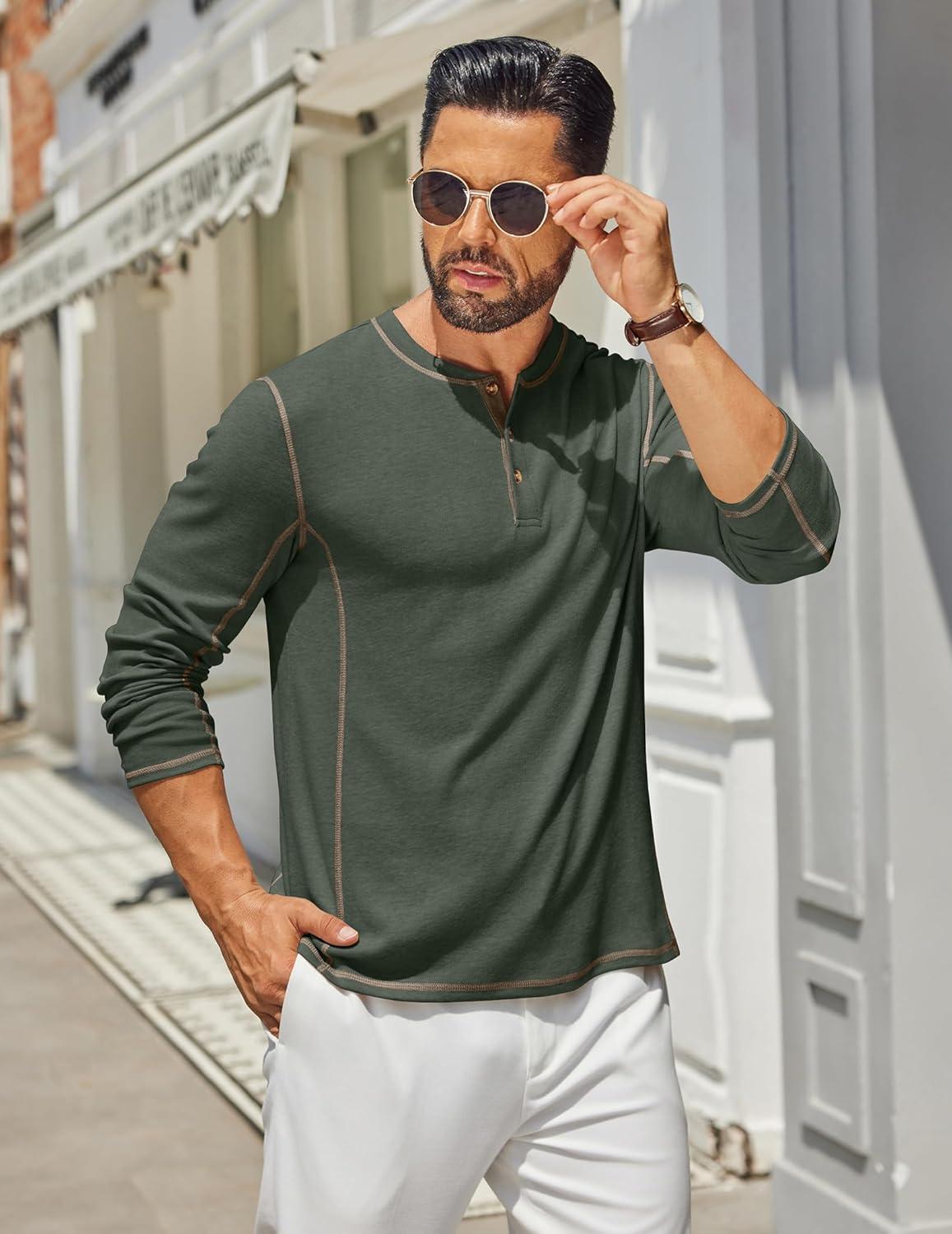 COOFANDY Men’s Henley Shirts Long Sleeve Casual Maverick Slub Henley T-Shirts Lightweight Basic Tee(Dark Army Green)