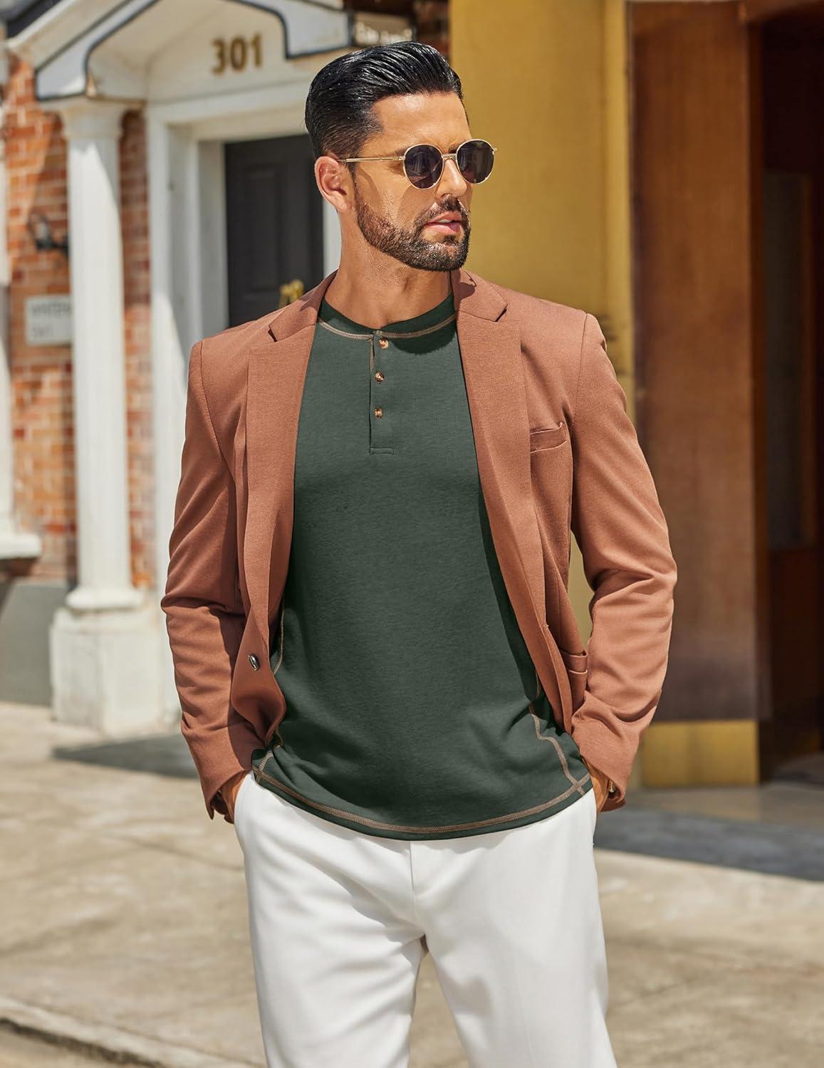 COOFANDY Men’s Henley Shirts Long Sleeve Casual Maverick Slub Henley T-Shirts Lightweight Basic Tee(Caramel)