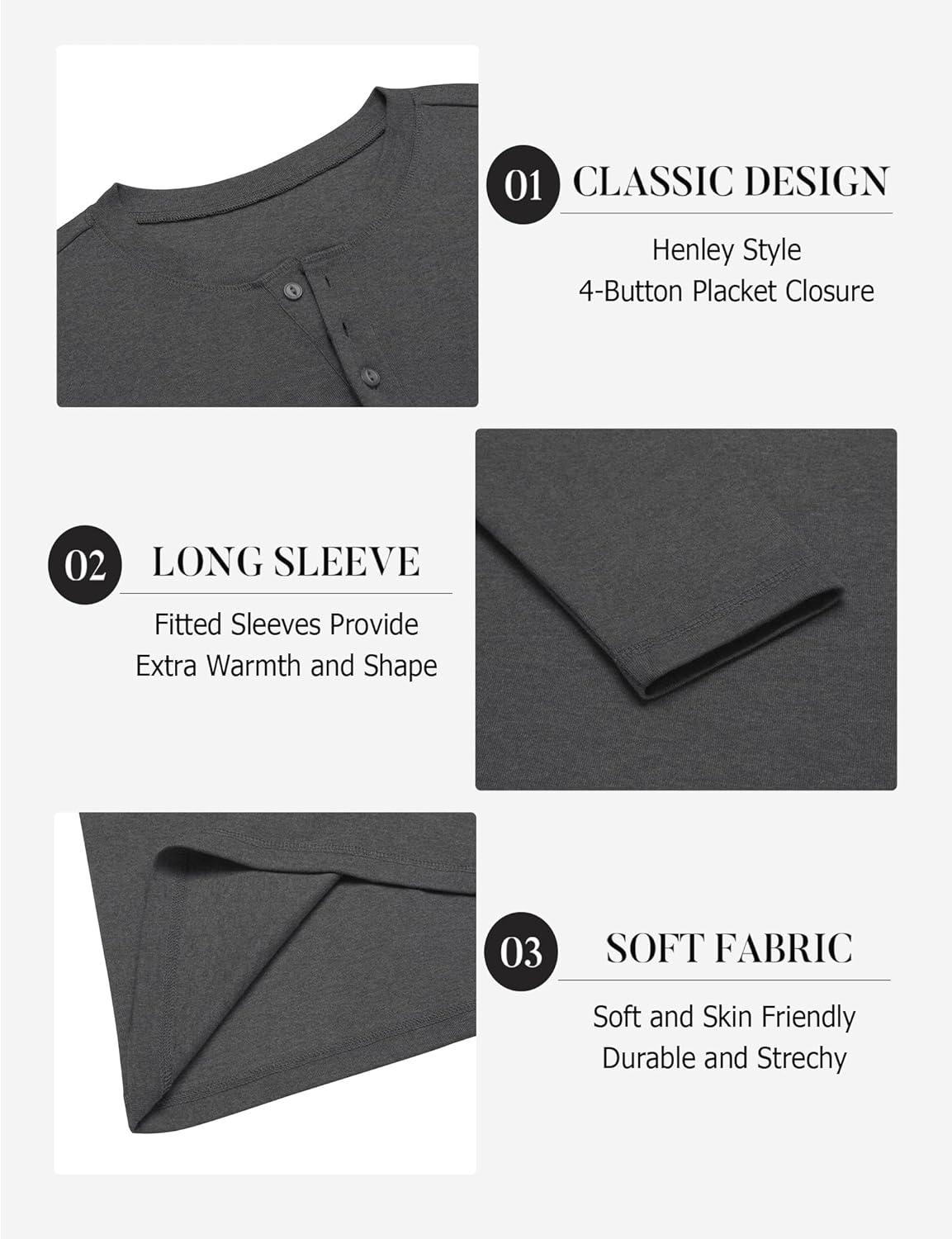 COOFANDY Mens Henley Shirts Long Sleeve Lightweight Buttons T-Shirts Casual Basic Pullover Top(Gray)