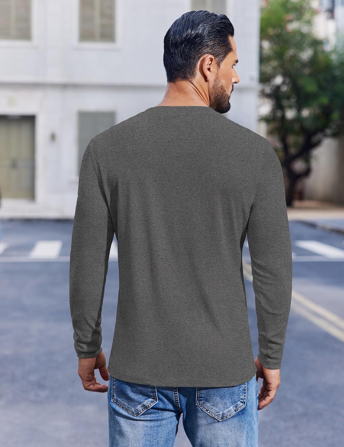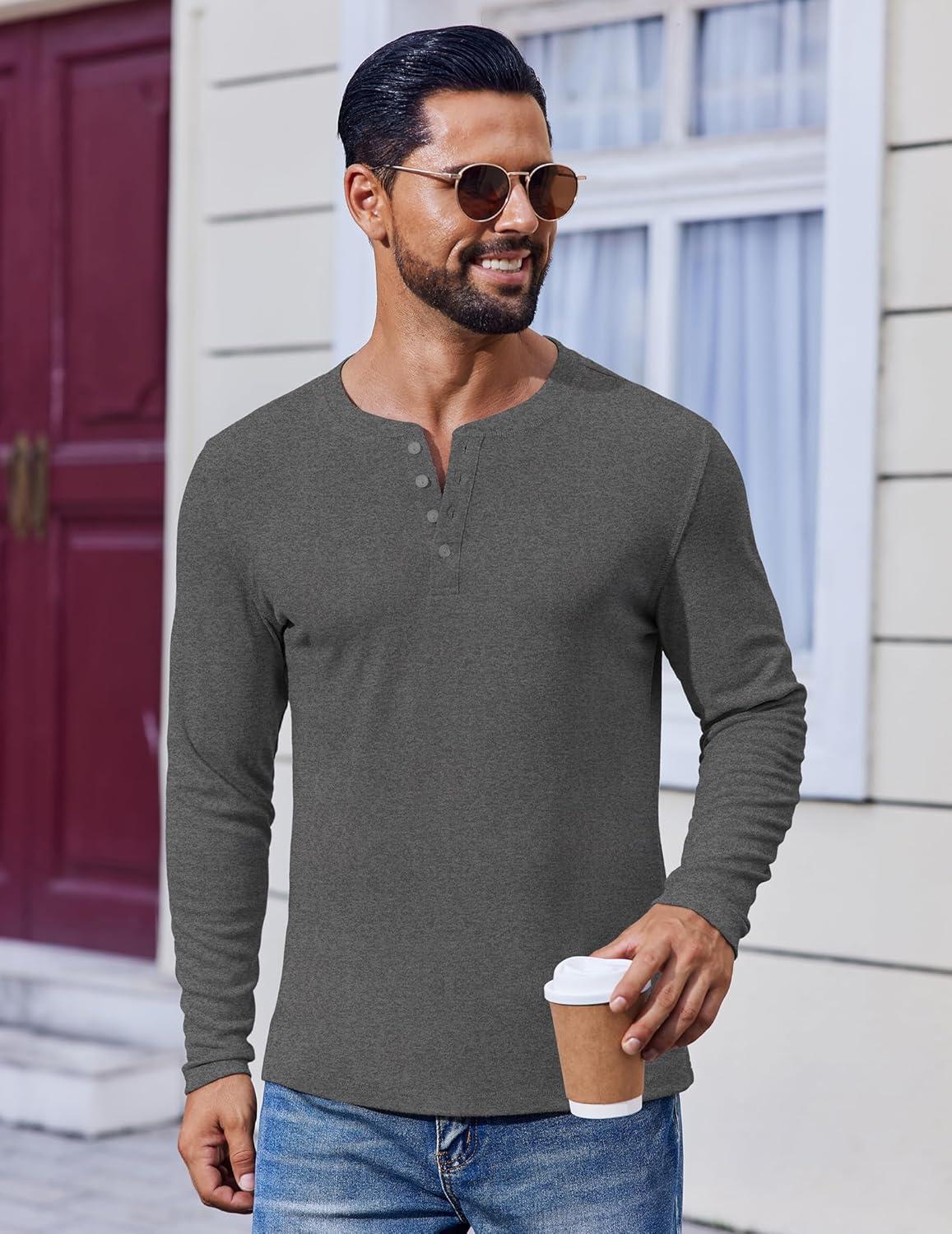 COOFANDY Mens Henley Shirts Long Sleeve Lightweight Buttons T-Shirts Casual Basic Pullover Top(Dark Grey)