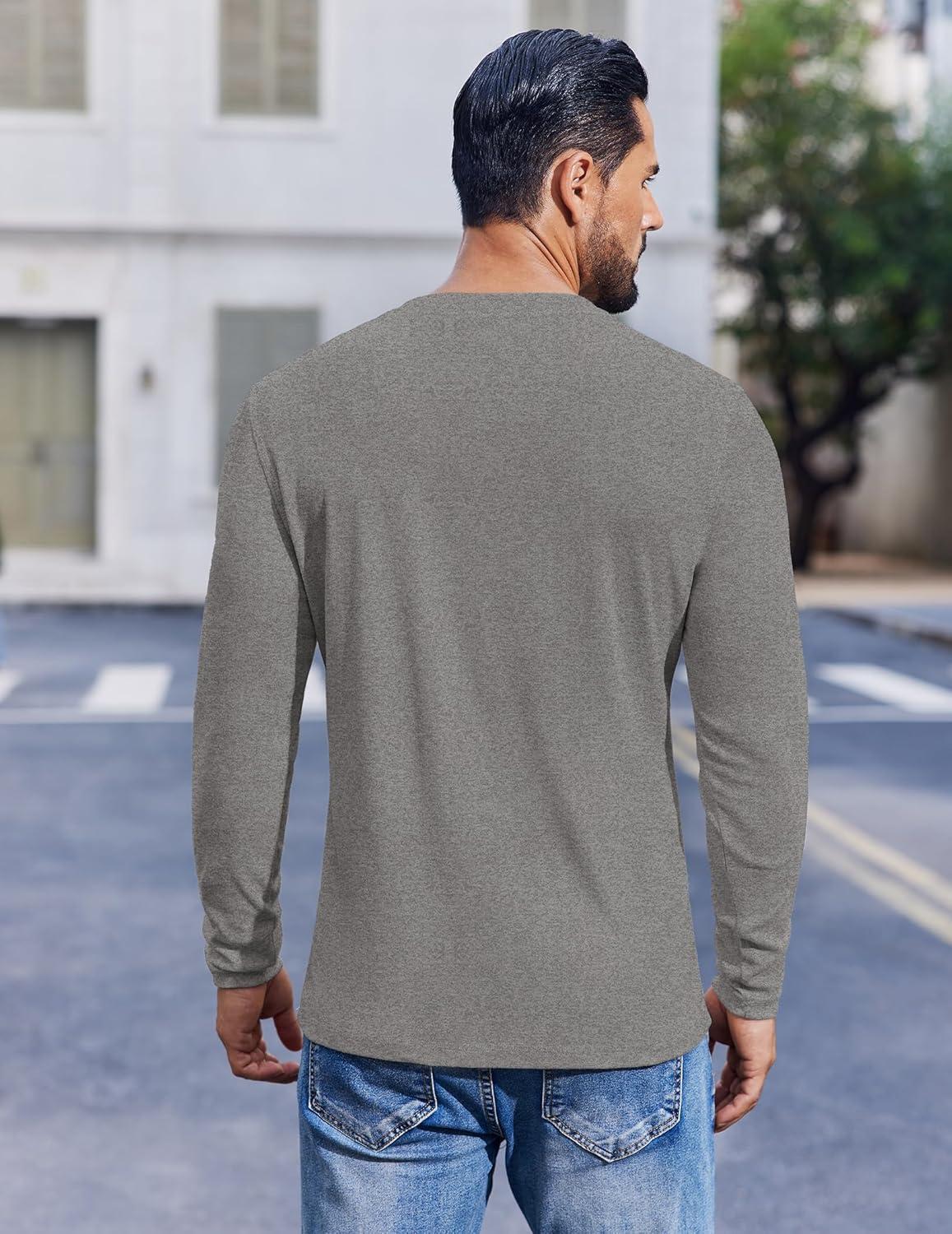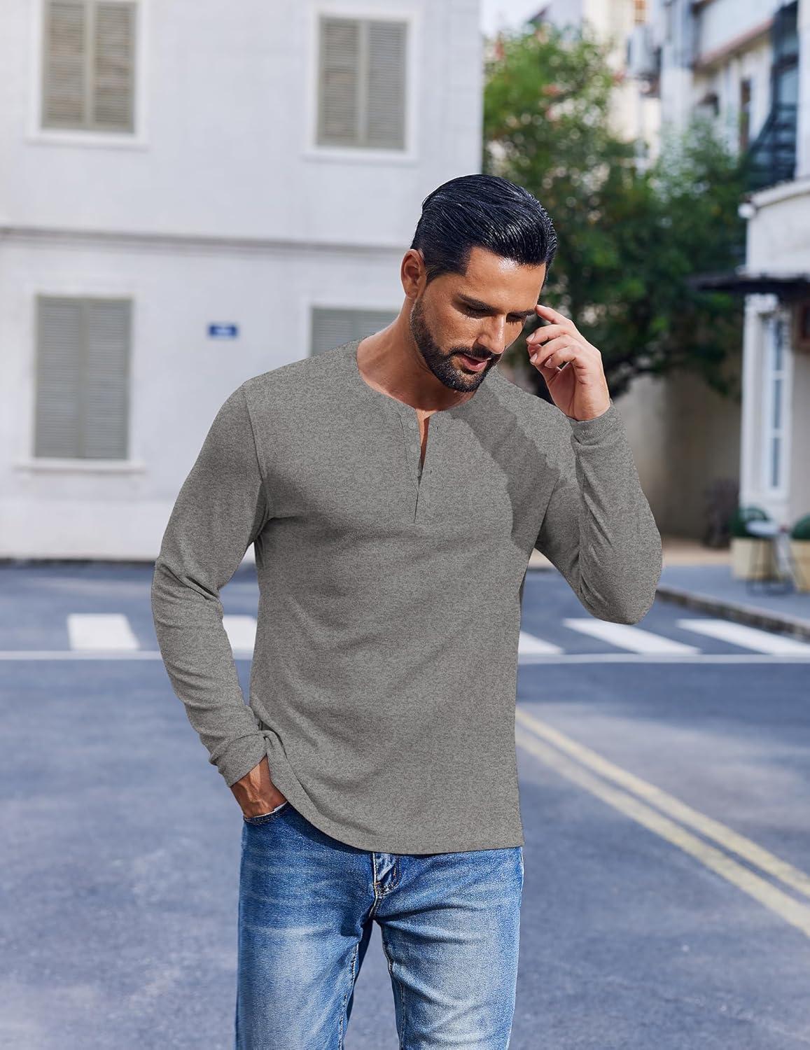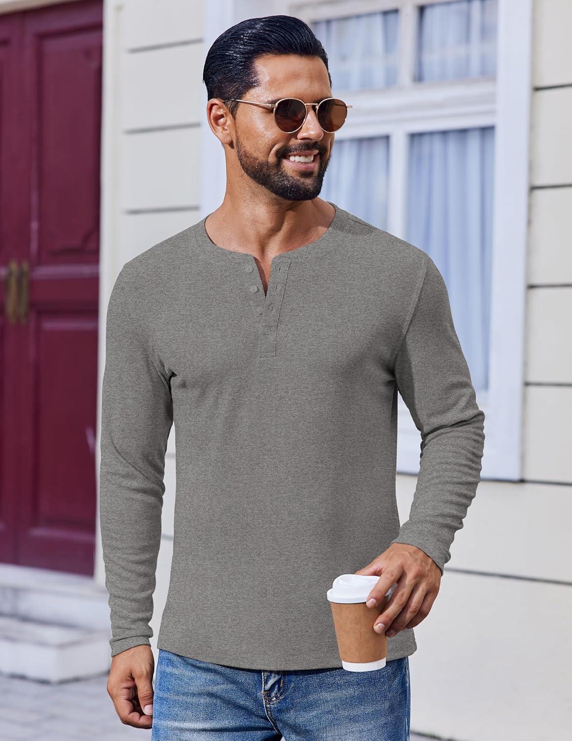 COOFANDY Mens Henley Shirts Long Sleeve Lightweight Buttons T-Shirts Casual Basic Pullover Top(Gray)