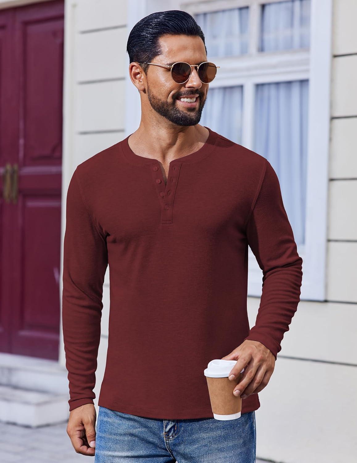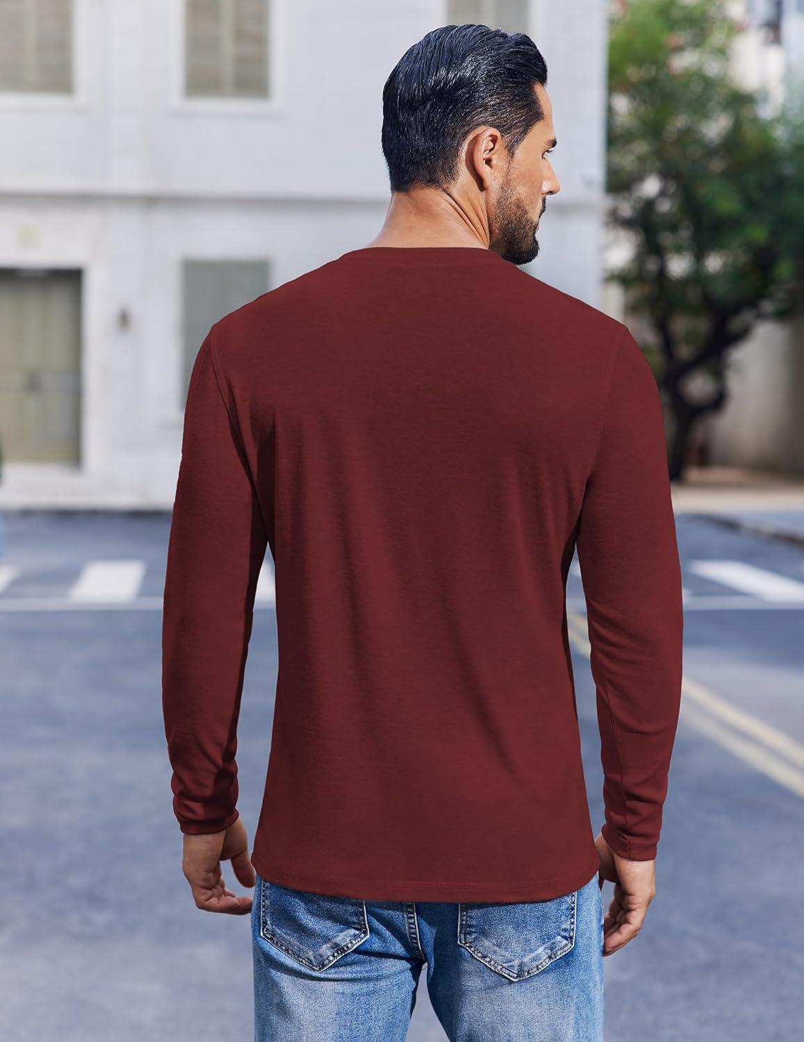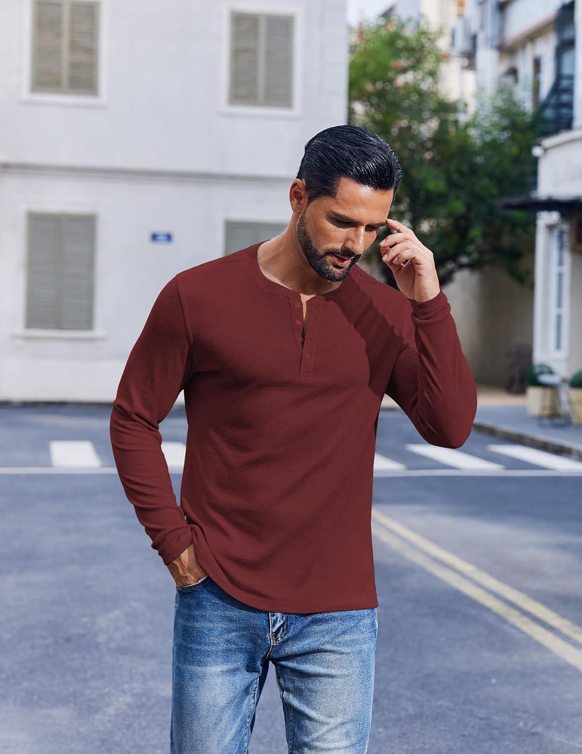COOFANDY Mens Henley Shirts Long Sleeve Lightweight Buttons T-Shirts Casual Basic Pullover Top(Wine Red)