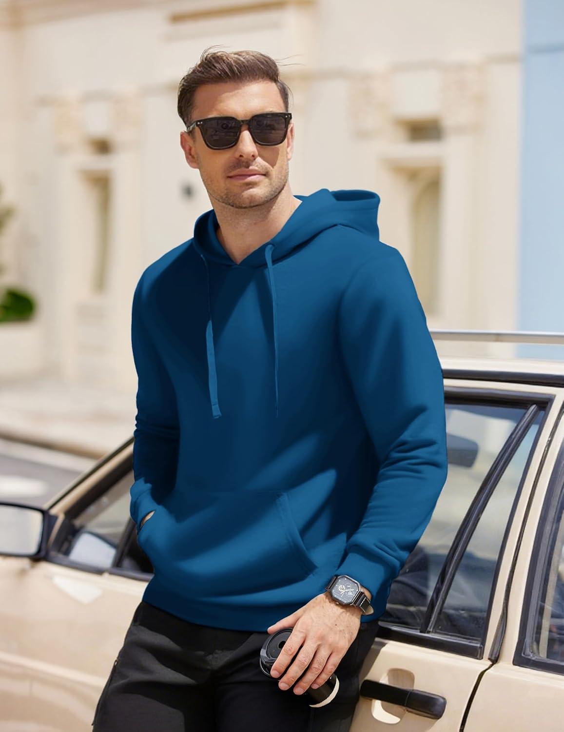 COOFANDY Men’s Hooded Pullover Casual Long Sleeve Drawstring Gym Hoodies Sweatshirts with Pocket(Royal Blue)