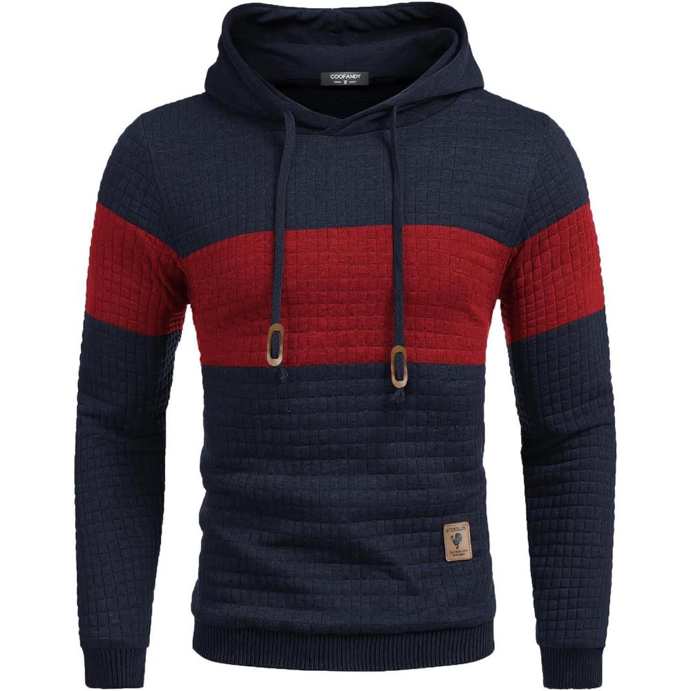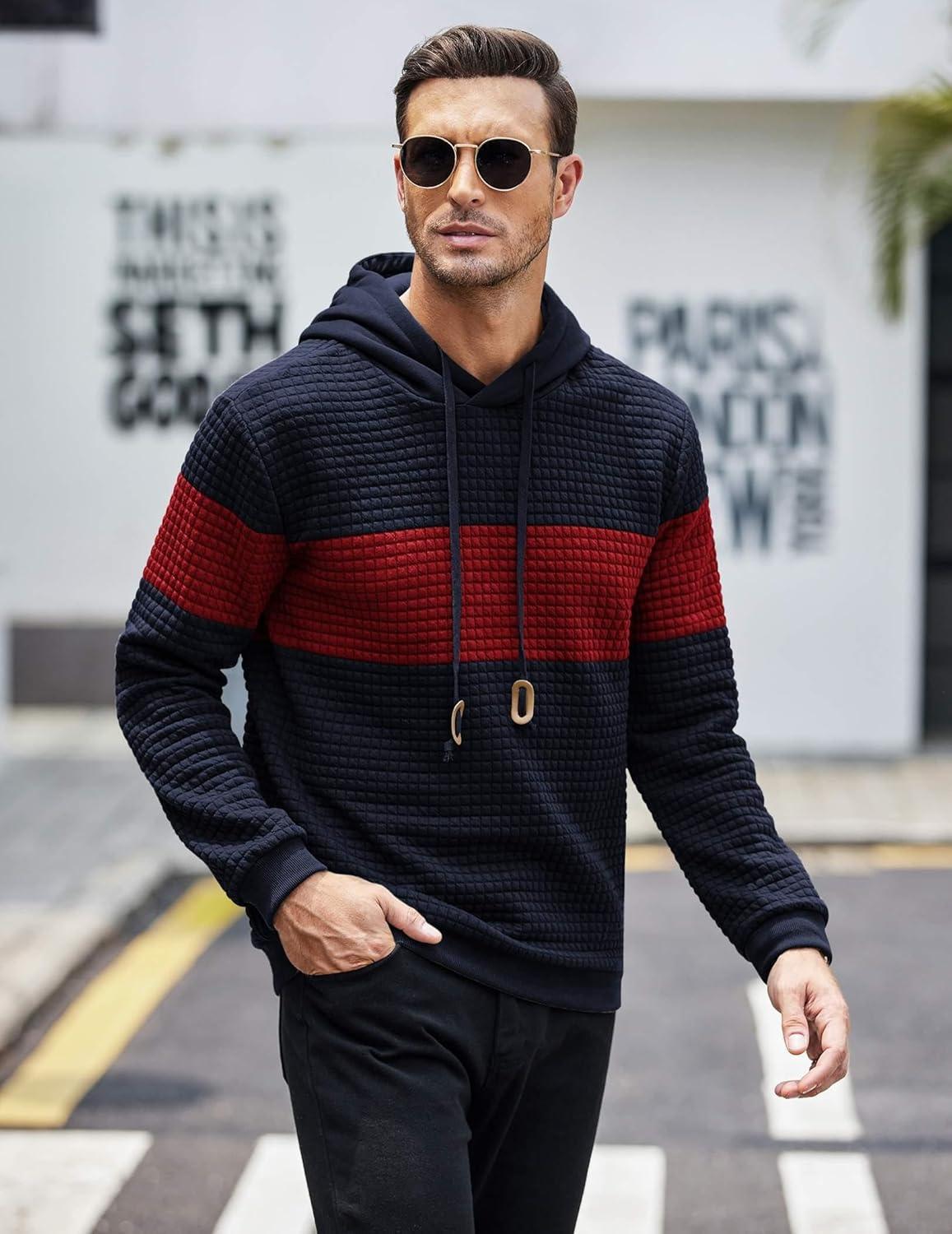 COOFANDY Mens Hooded Sweatshirt Casual Long Sleeve Drawstring Waffle Knit Pullover Hoodies(Pat9(navy Blue&wine Red))