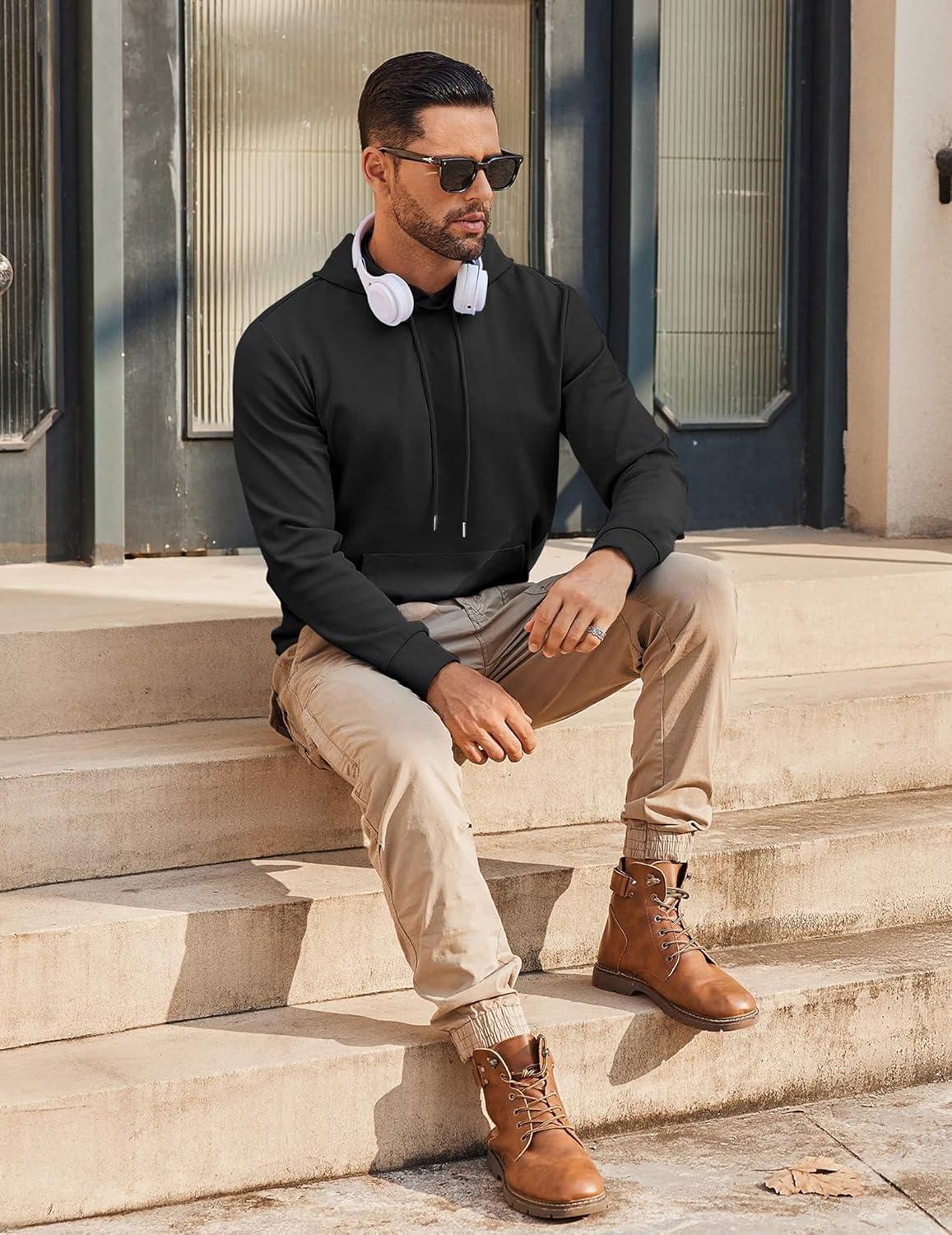 COOFANDY Mens Hoodie Long Sleeve Casual Pullover Hooded Sweatshirt Fashion Drawstring Hoodies with Pocket(Black)