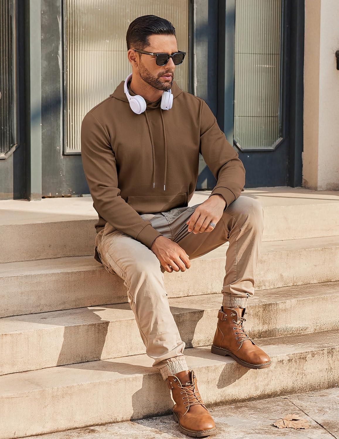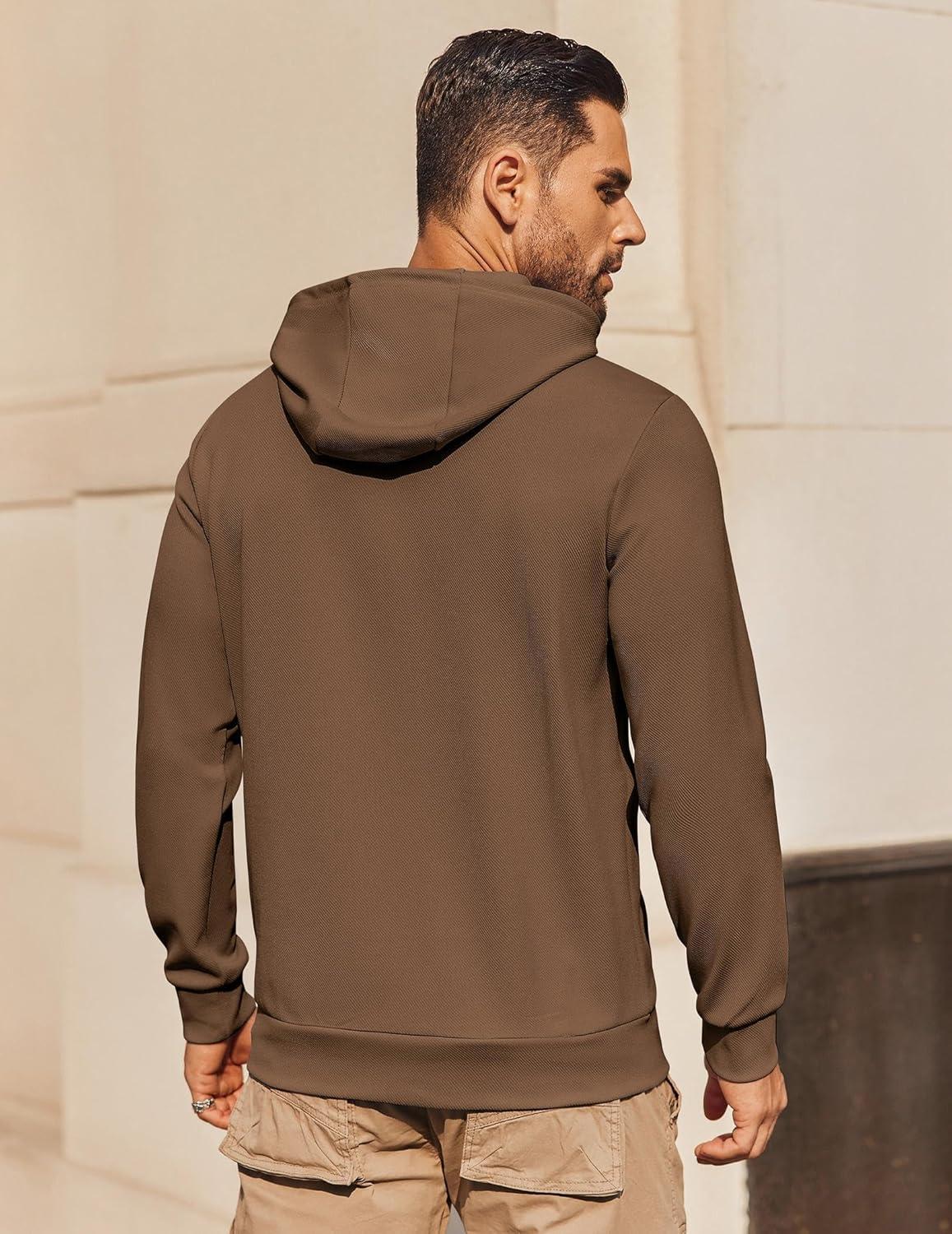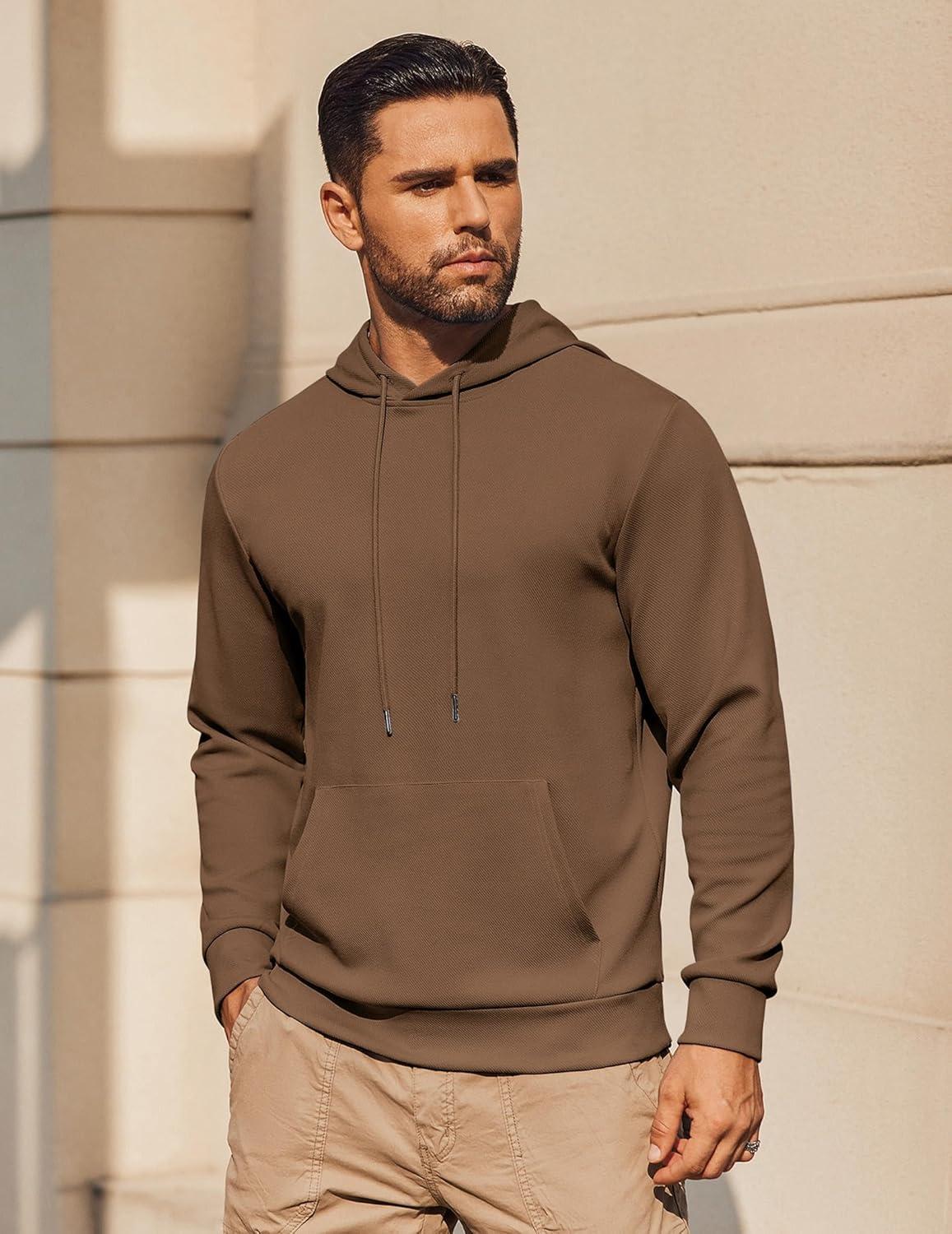 COOFANDY Mens Hoodie Long Sleeve Casual Pullover Hooded Sweatshirt Fashion Drawstring Hoodies with Pocket(Brown)
