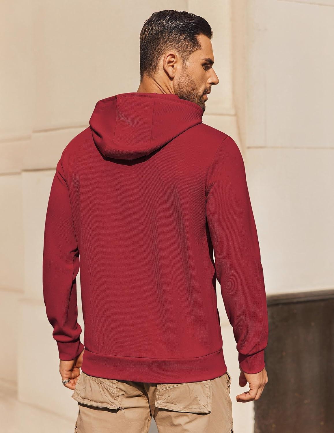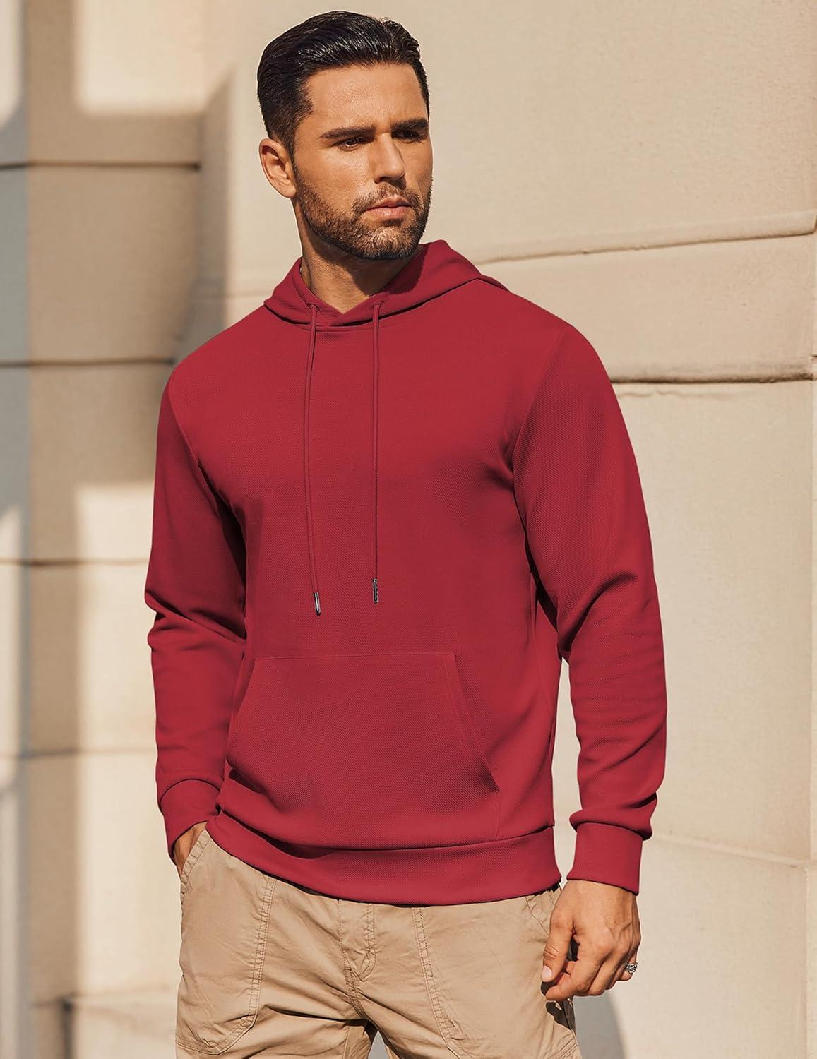 COOFANDY Mens Hoodie Long Sleeve Casual Pullover Hooded Sweatshirt Fashion Drawstring Hoodies with Pocket(Maroon)