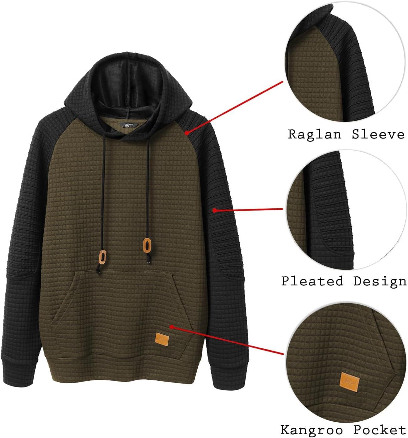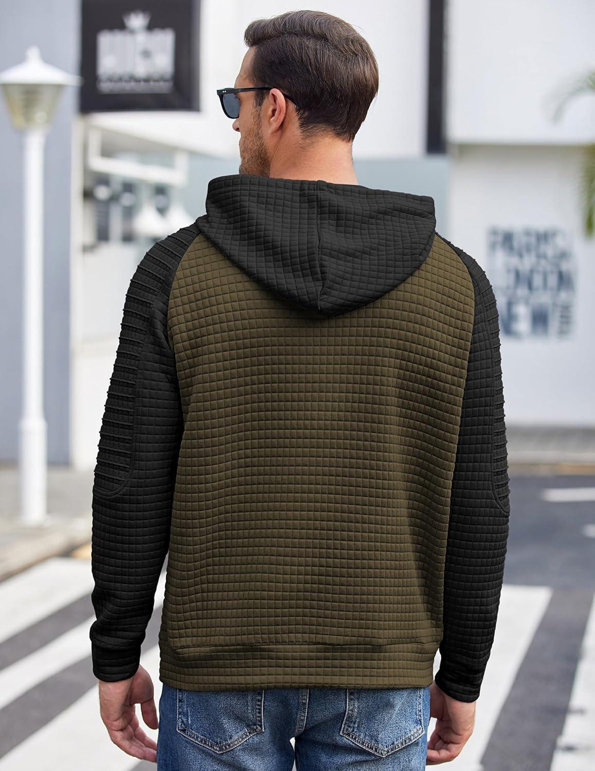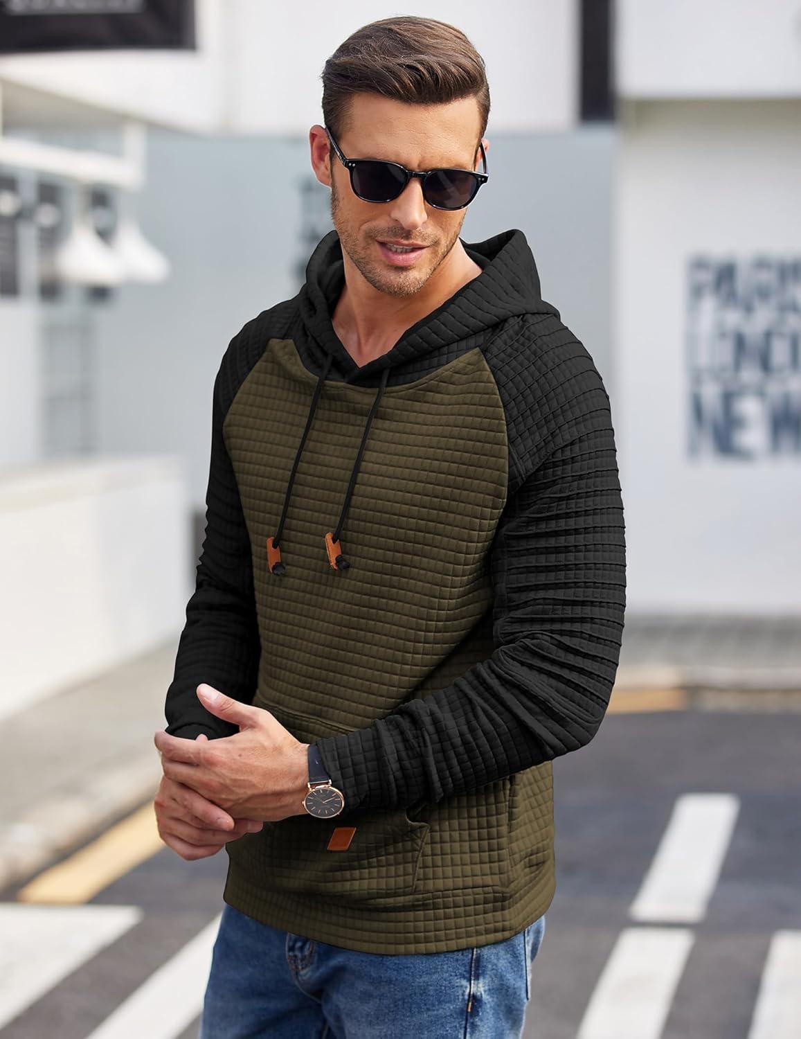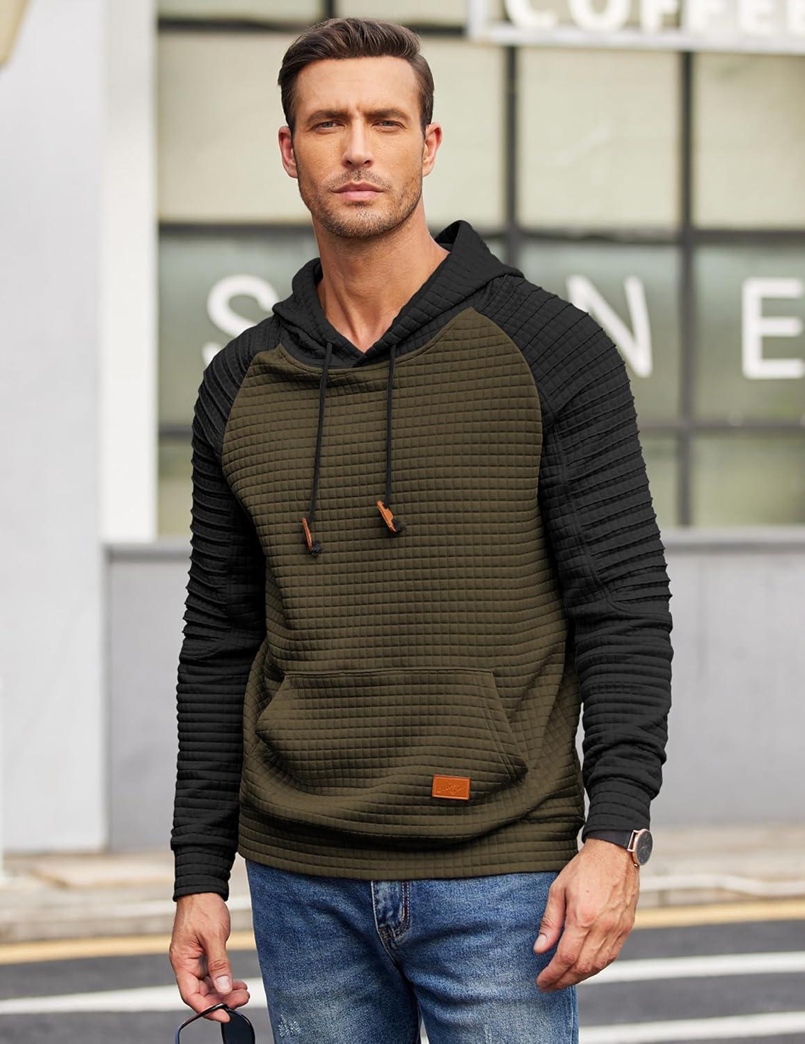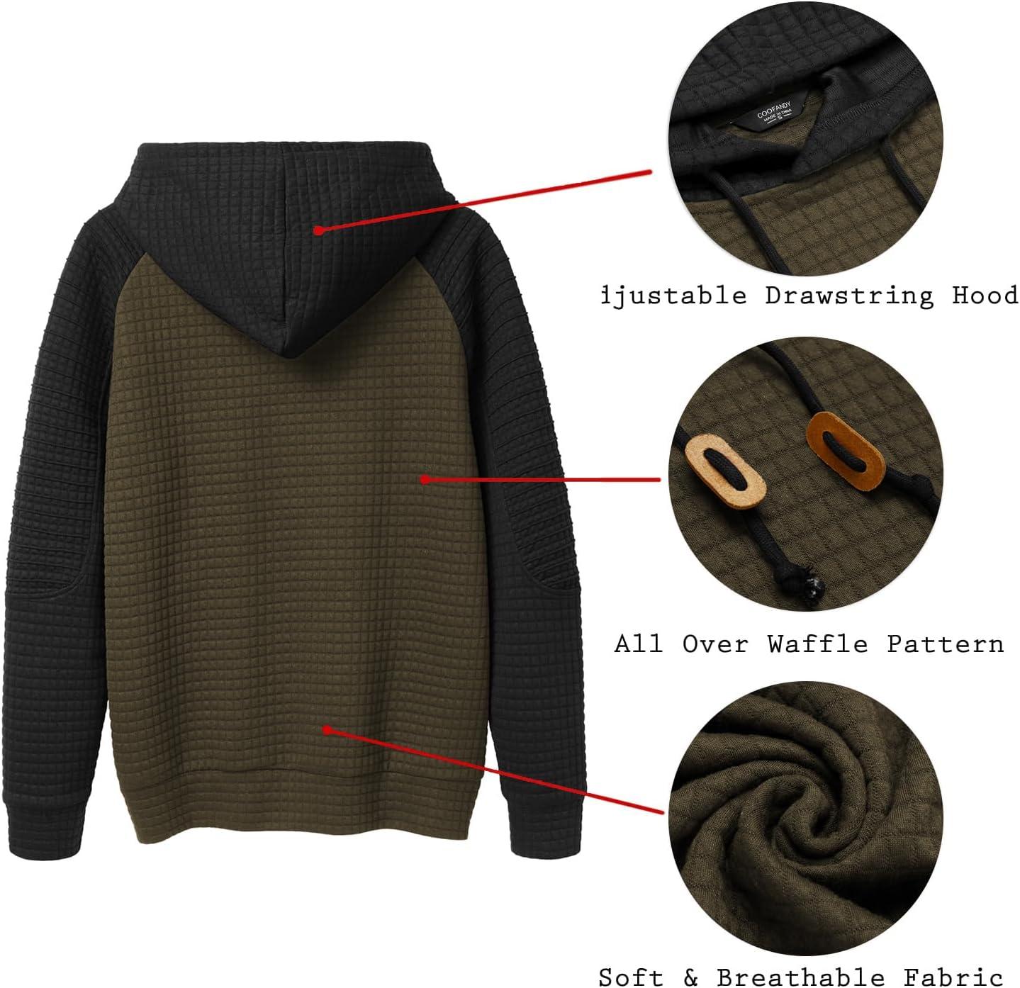 COOFANDY Mens Hoodies Pullover Casaul Long Sleeve Drawstring Waffle Knit Hooded Sweatshirt with Kanga Pocket(Green&black)