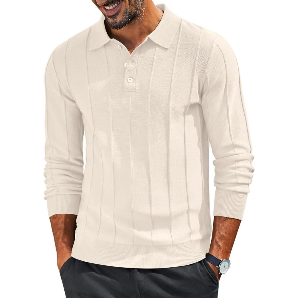 COOFANDY Mens Knit Long Sleeve Polo Sweater Business Casual Collared Golf Sweaters Ribbed Textured Activewear Polos(Cream White)