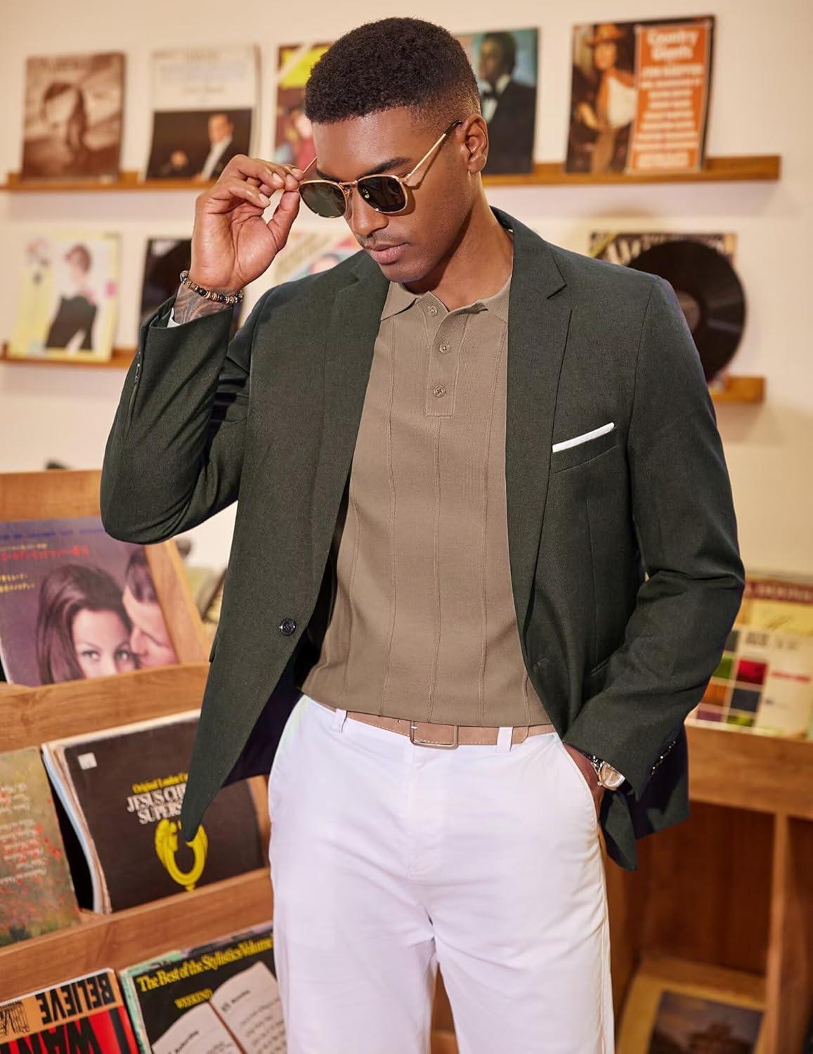 COOFANDY Mens Knit Long Sleeve Polo Sweater Business Casual Collared Golf Sweaters Ribbed Textured Activewear Polos(Green)