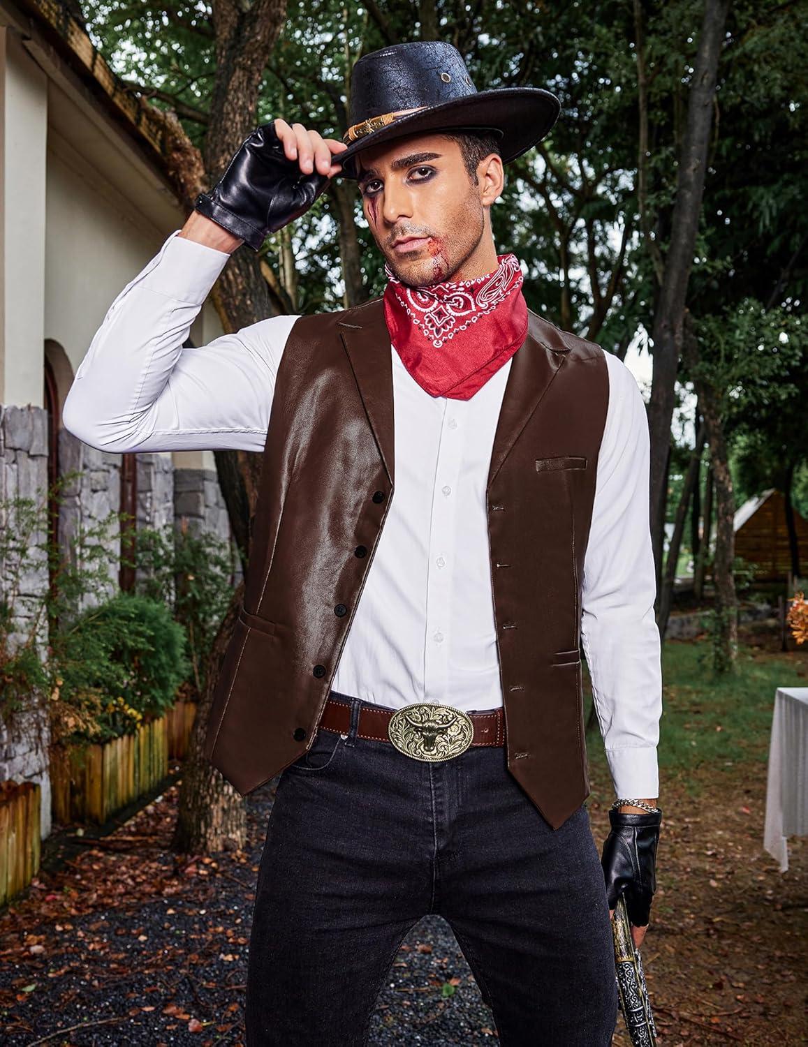COOFANDY Men’s Leather Suit Vest Casual Western Vest Jacket Lightweight V-Neck Dress Waistcoats Halloween Costumes(Dark Brown)