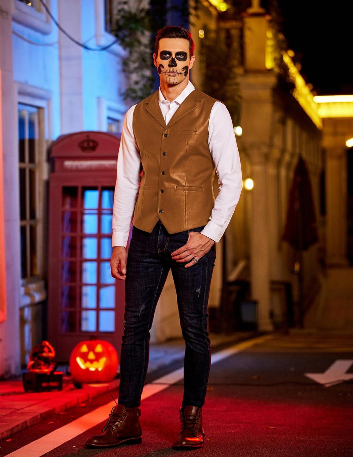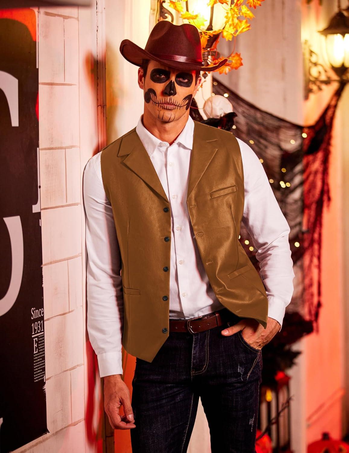 COOFANDY Men’s Leather Suit Vest Casual Western Vest Jacket Lightweight V-Neck Dress Waistcoats Halloween Costumes(Light Brown)