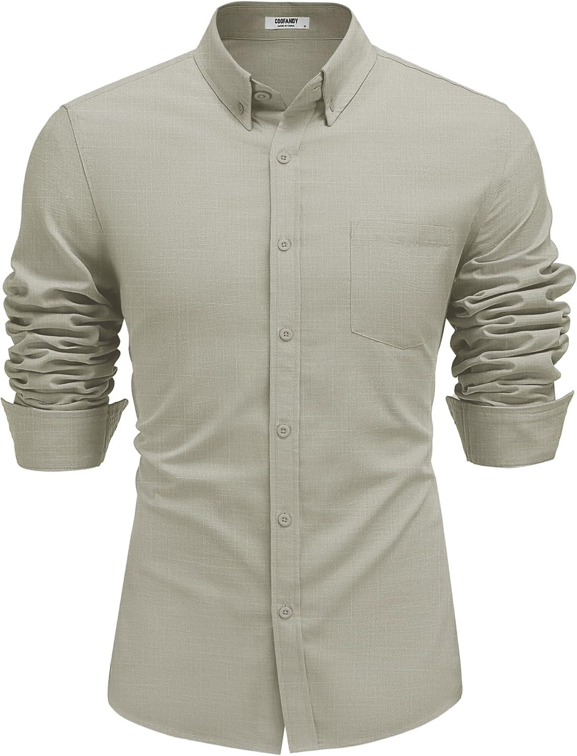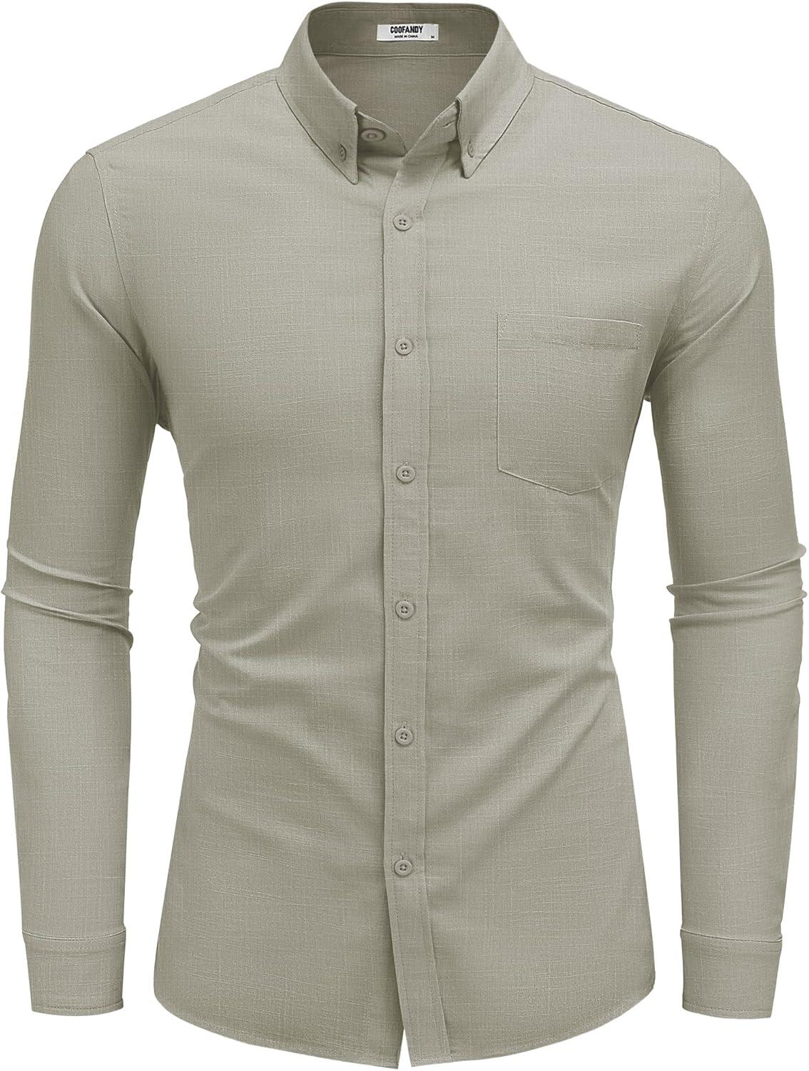 COOFANDY Men’s Long Sleeve Button Down Shirts Casual Cotton Linen Shirts Summer Beach Shirt with Pocket(Light Grey)
