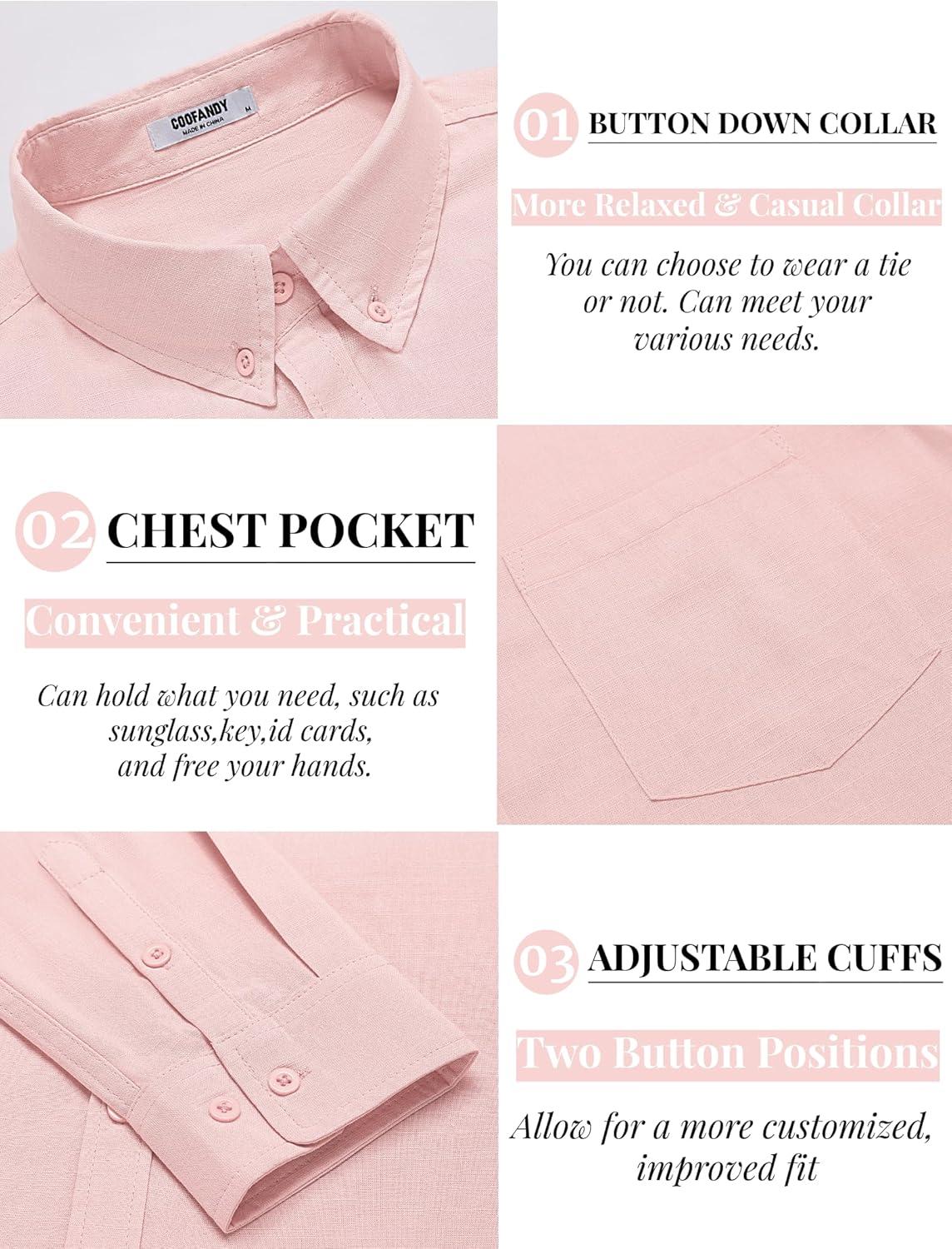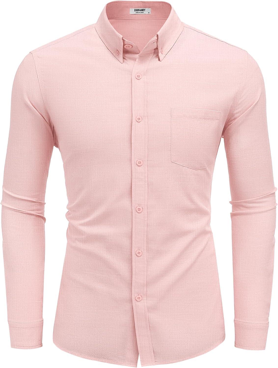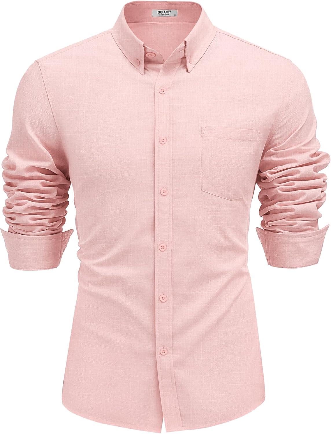 Get the COOFANDY Men’s Long Sleeve Button Down Shirts Casual Cotton Linen Shirts Summer Beach Shirt with Pocket(Pink) you want at a discounted price during our markdown sale event.