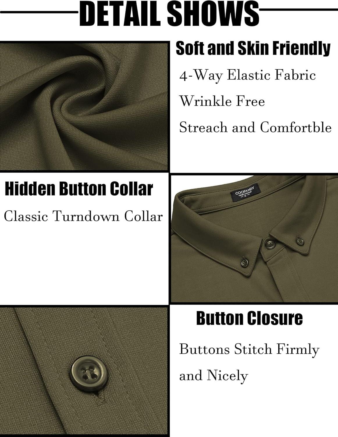 COOFANDY Men’s Long Sleeve Dress Shirt Casual Button Down Shirts Wrinkle Free Untucked Shirt(Army Green)