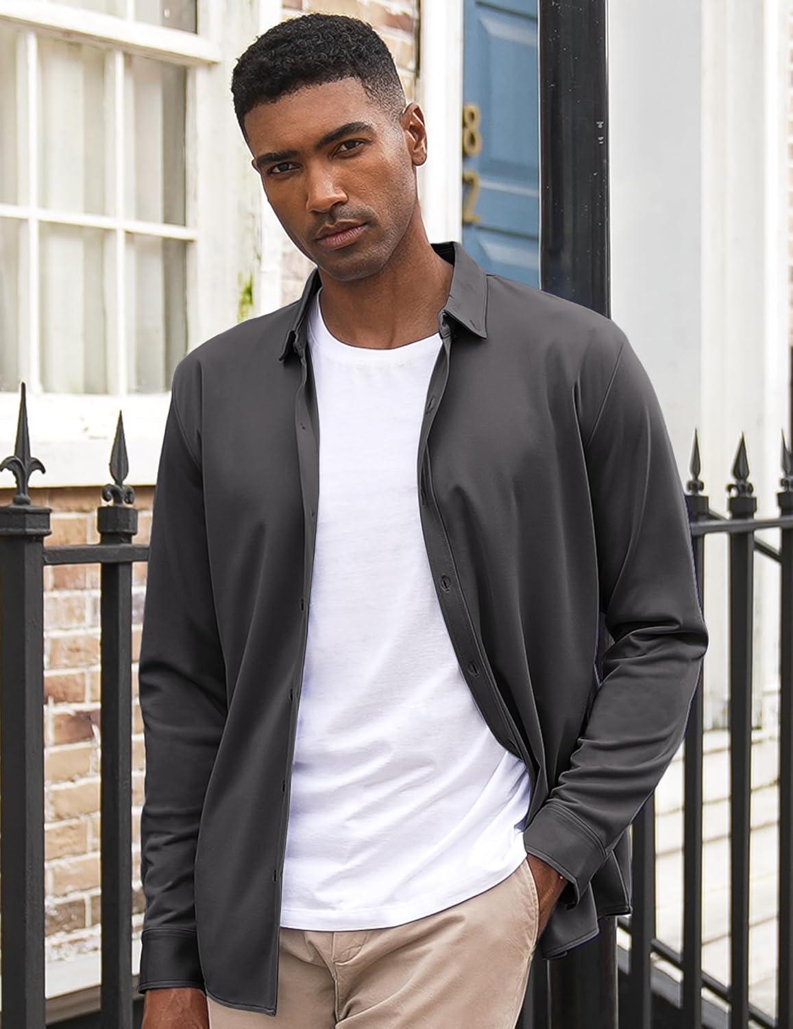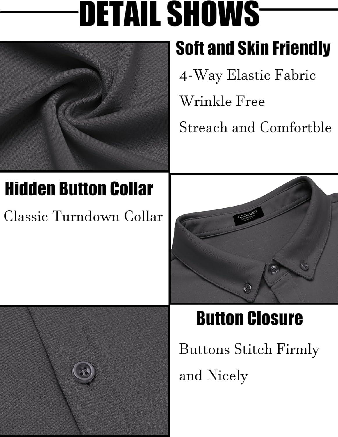 COOFANDY Men’s Long Sleeve Dress Shirt Casual Button Down Shirts Wrinkle Free Untucked Shirt(Dark Grey)
