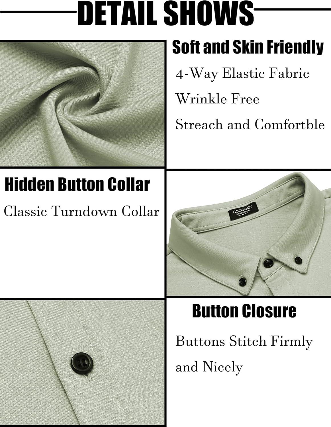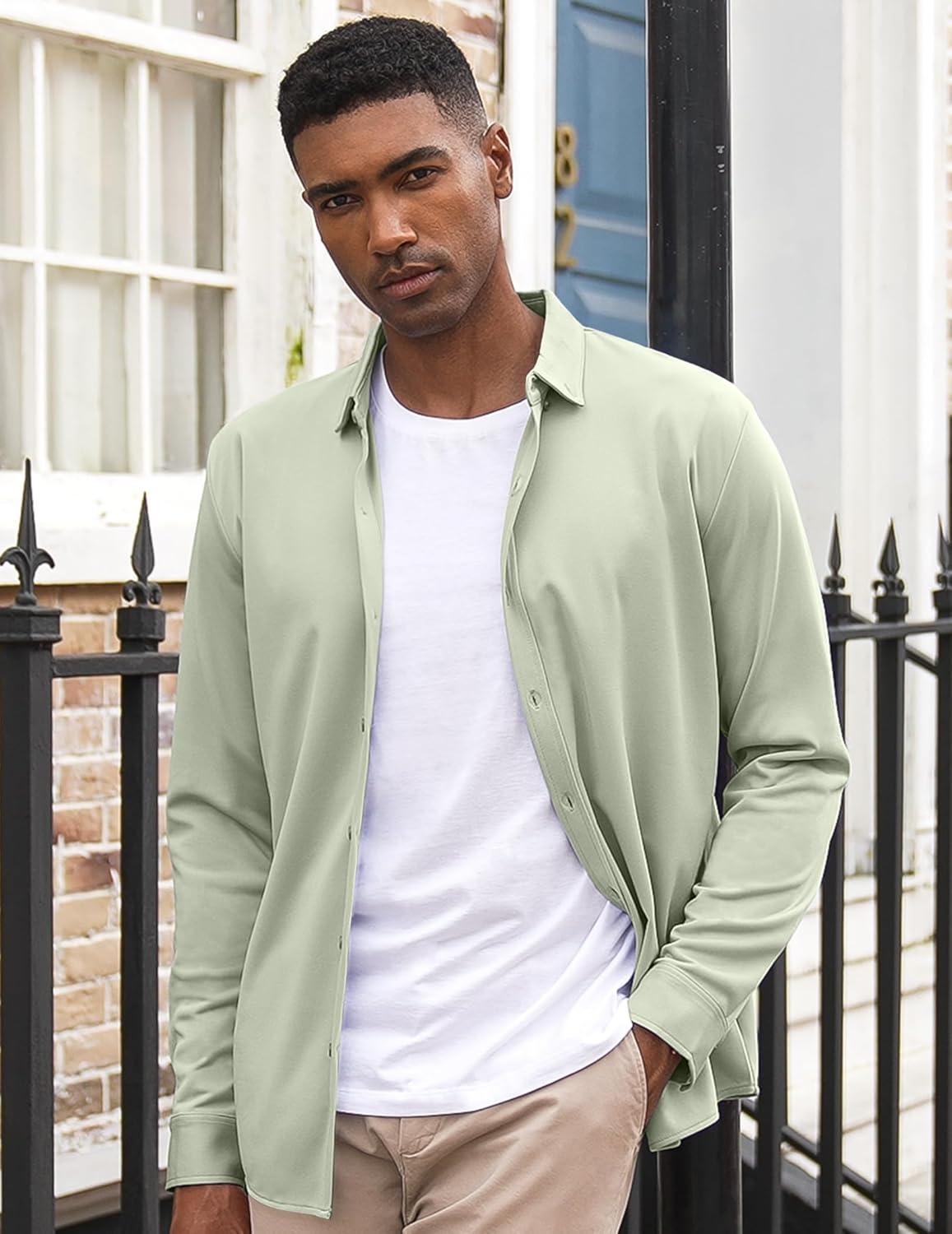 COOFANDY Men’s Long Sleeve Dress Shirt Casual Button Down Shirts Wrinkle Free Untucked Shirt(Light Green)
