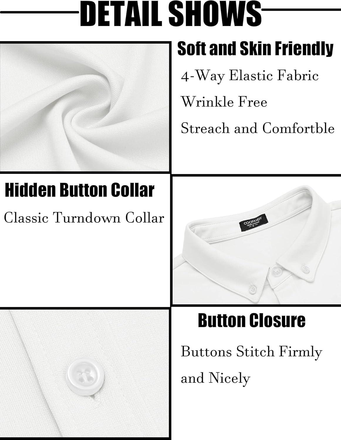 COOFANDY Men’s Long Sleeve Dress Shirt Casual Button Down Shirts Wrinkle Free Untucked Shirt(White)