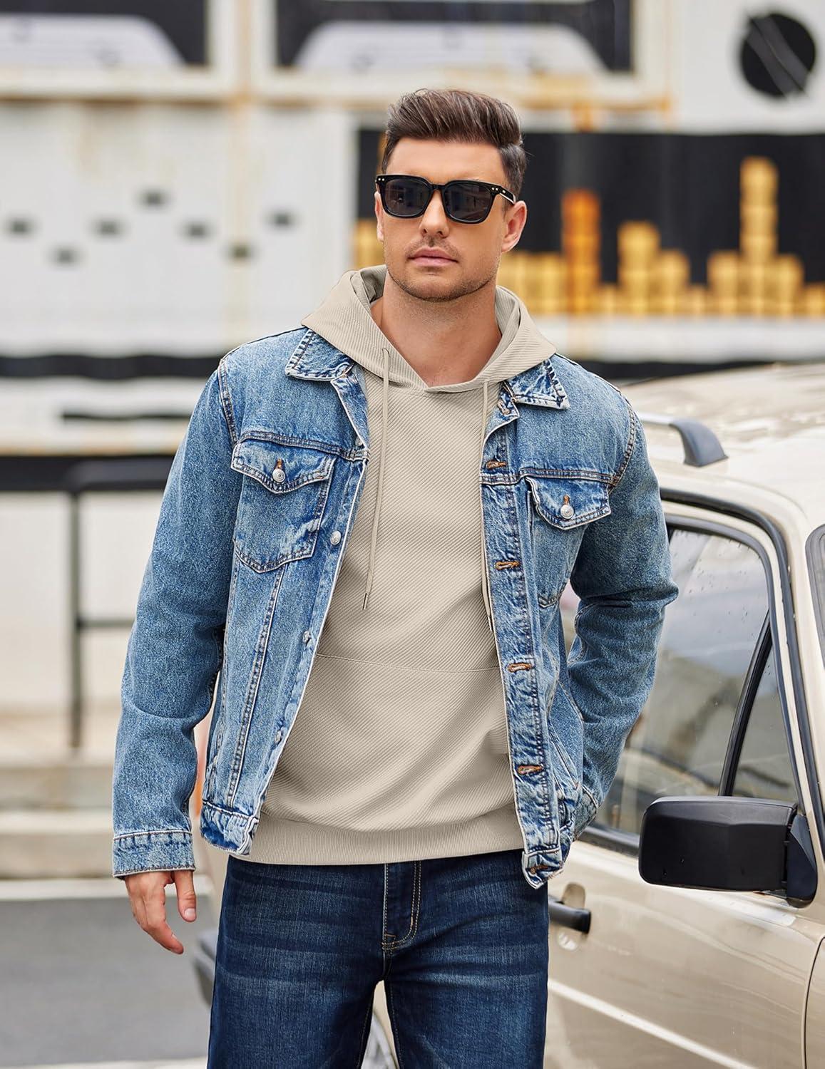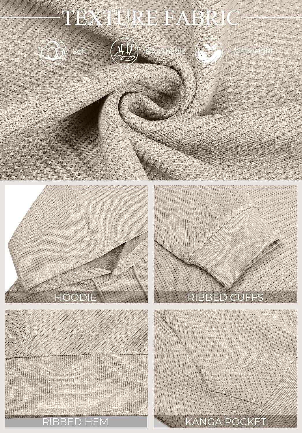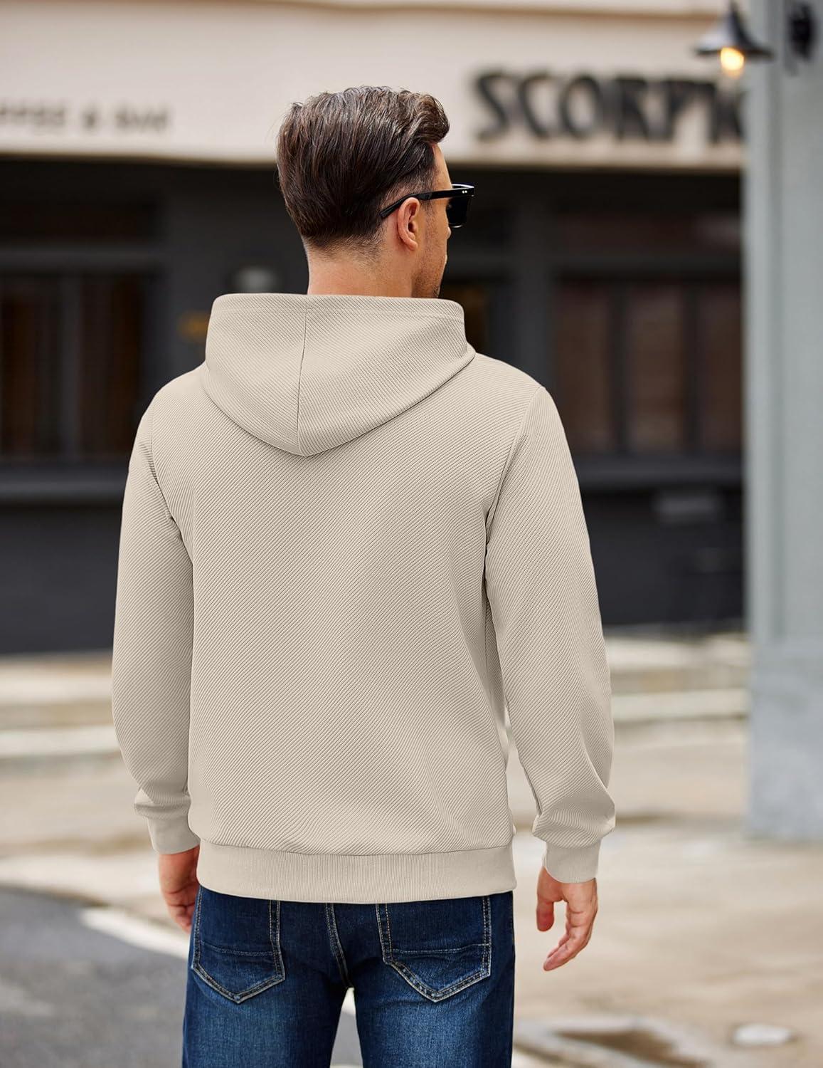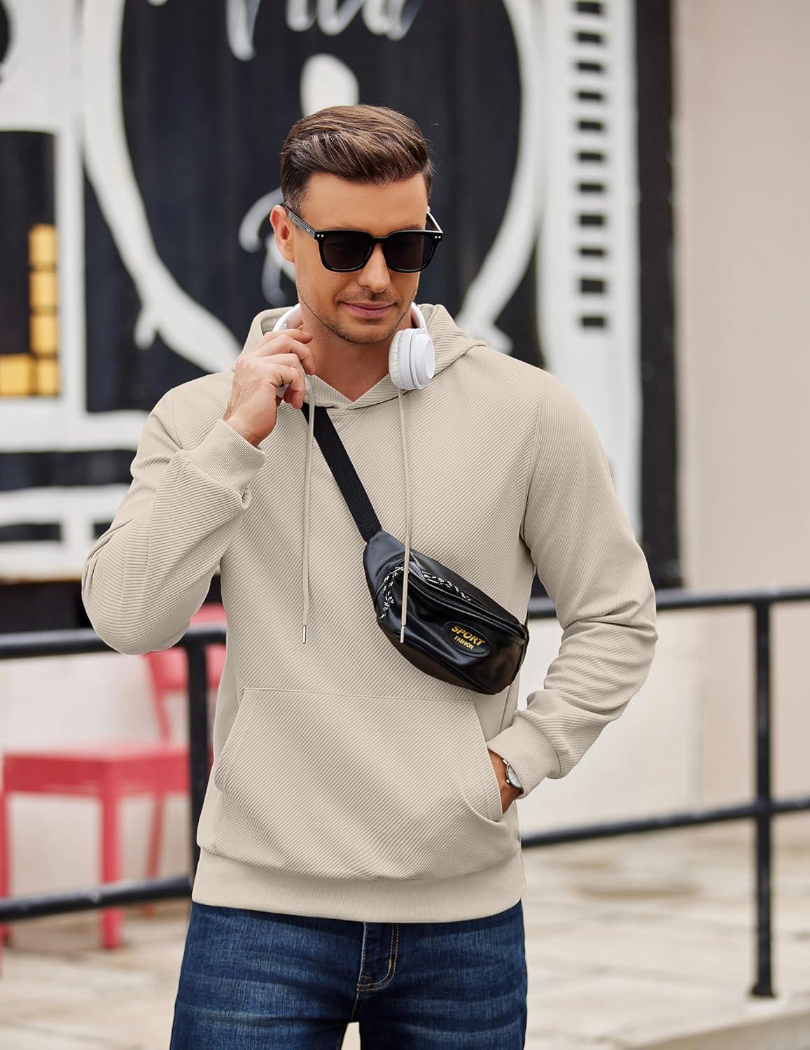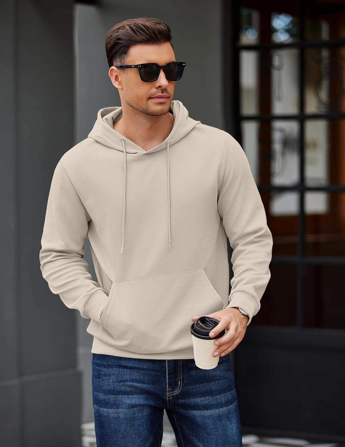 COOFANDY Men’s Long Sleeve Hooded Sweatshirt Casual Lightweight Hoodies Pullover Textured Drawstring Hoodie with Kanga Pocket(Moon Gray)