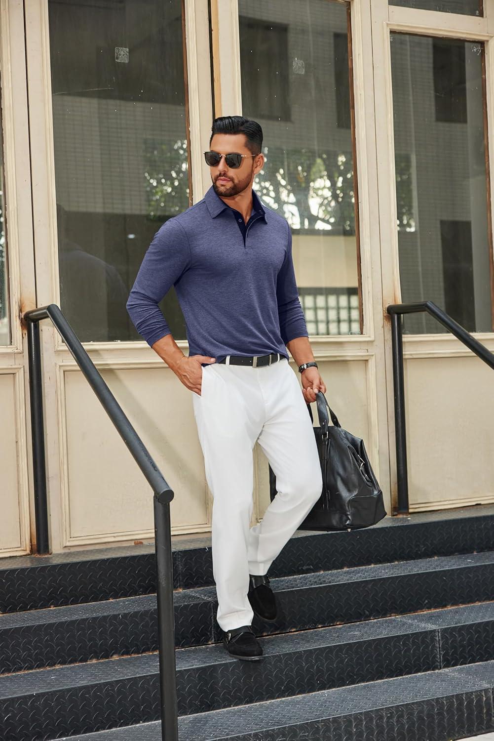 COOFANDY Mens Long Sleeve Polo Shirts Button Casual Tee Collared Work Pullover Shirts(White)
