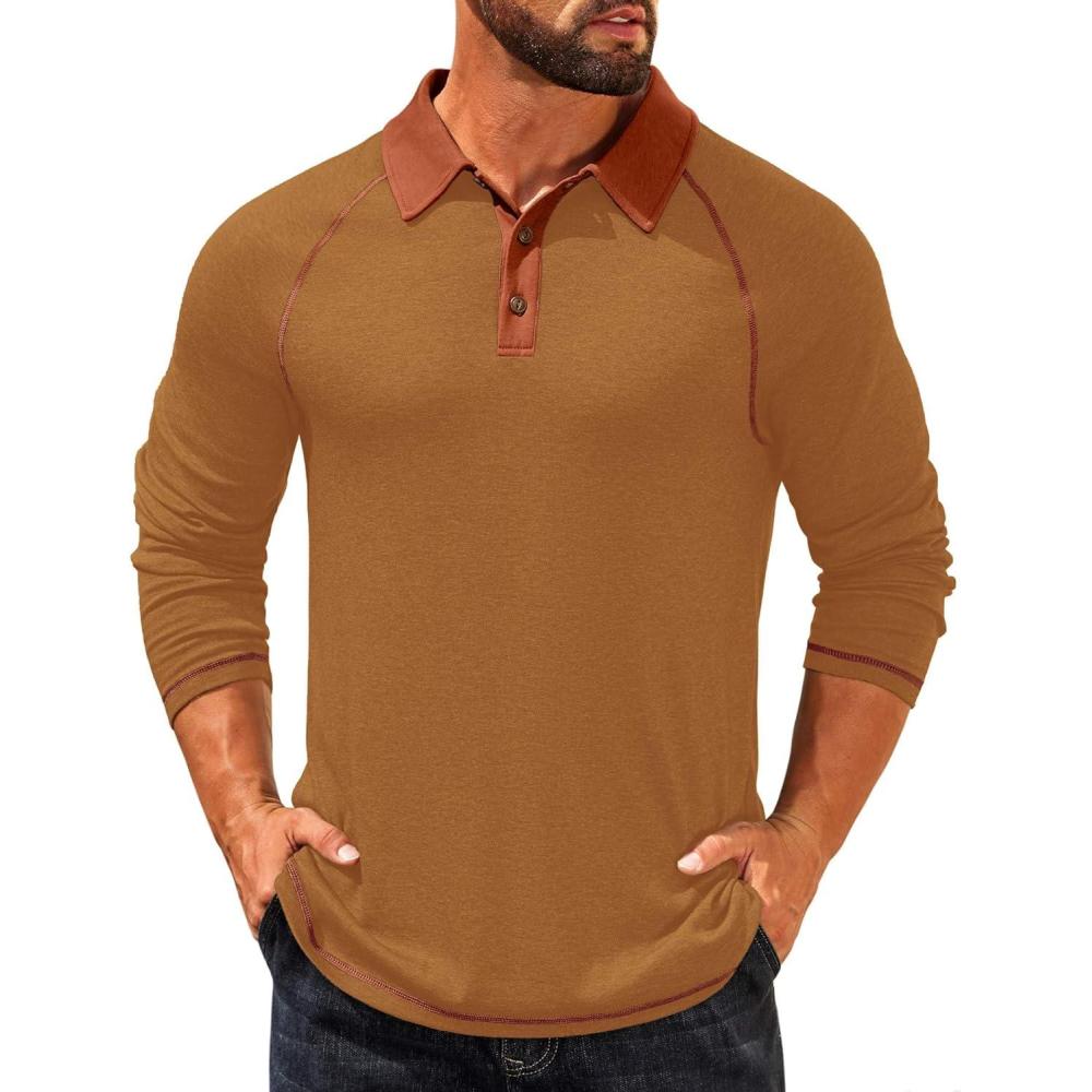 COOFANDY Mens Long Sleeve Polo Shirts Casual Button Collared Shirts Raglan Golf T Shirt(Brown)